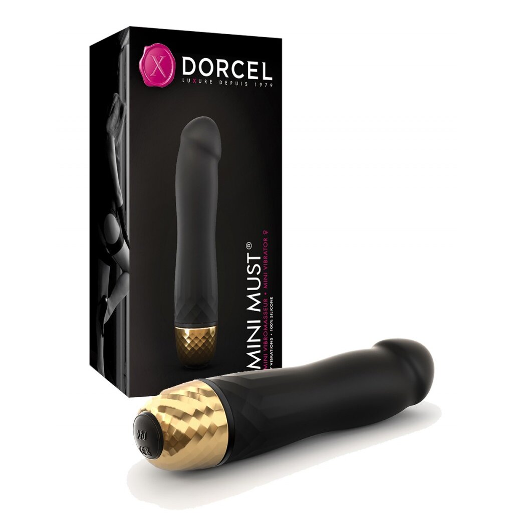 Discover the Mini Must Gold vibrator from DORCEL - a compact, gentle and extremely efficient mini vibrator with 7 different vibration modes. With a size of Ø 2.8 x 12 cm and a weight of only 0.104 kg, this vibrator is handy and easy to transport. It is powered by an AA battery (not included) and therefore offers maximum flexibility. The Mini Must Gold is waterproof and splash-proof, so you can also use it in the shower or bath. In elegant black and gold, this vibrator is not only functional but also stylish. Made from soft silicone material, it provides a pleasant feeling against the skin. Get the Mini Must Gold vibrator now and enjoy sensual moments of pleasure!