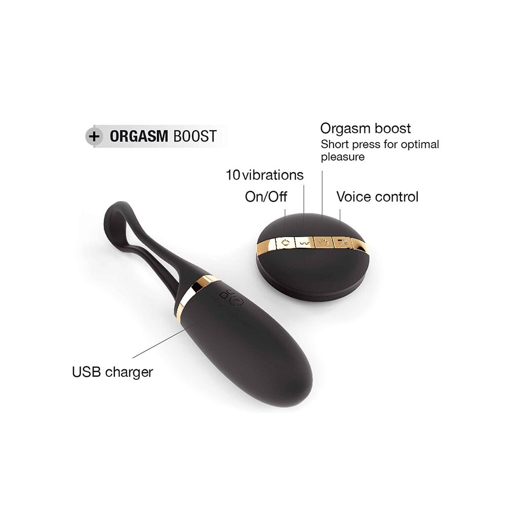 Discover new dimensions of pleasure with the Secret Delight vibrating egg with remote control from DORCEL! This discreet and practical vibrating egg is your perfect companion for sensual moments for two. With the remote control, you can either take control yourself or leave it to your partner. Enjoy 10 different vibrations that provide varied moments of pleasure. The vibrating egg is made of phthalate-free silicone, which guarantees safe use. Use the innovative voice or music control for exciting games in the bedroom and activate the boost function for intense stimulation. The powerful motor provides powerful vibrations that will catapult you to seventh heaven. Packaged in a box with bag and manual, the Secret Delight vibrating egg is easy to store and use. Thanks to the USB rechargeability, you can operate the vibrator in an environmentally friendly way and are always ready for new adventures. The size of Ø 3.2 x 13 cm and the weight of 0.192 kg make the vibrating egg handy and easy to handle. It is waterproof and splash-proof, so you can also use it in water. In elegant black and gold, the design of the Secret Delight vibrating egg is not only functional but also stylish. Get your Secret Delight vibrating egg now and immerse yourself in a world of sensual pleasure!
