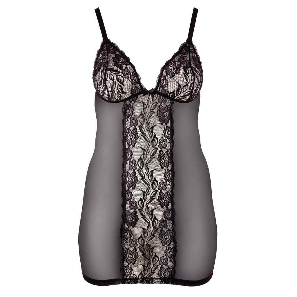 Semi-transparent lingerie dress with lace at the front. Wonderfully stretchy and a perfect fit. With adjustable straps.