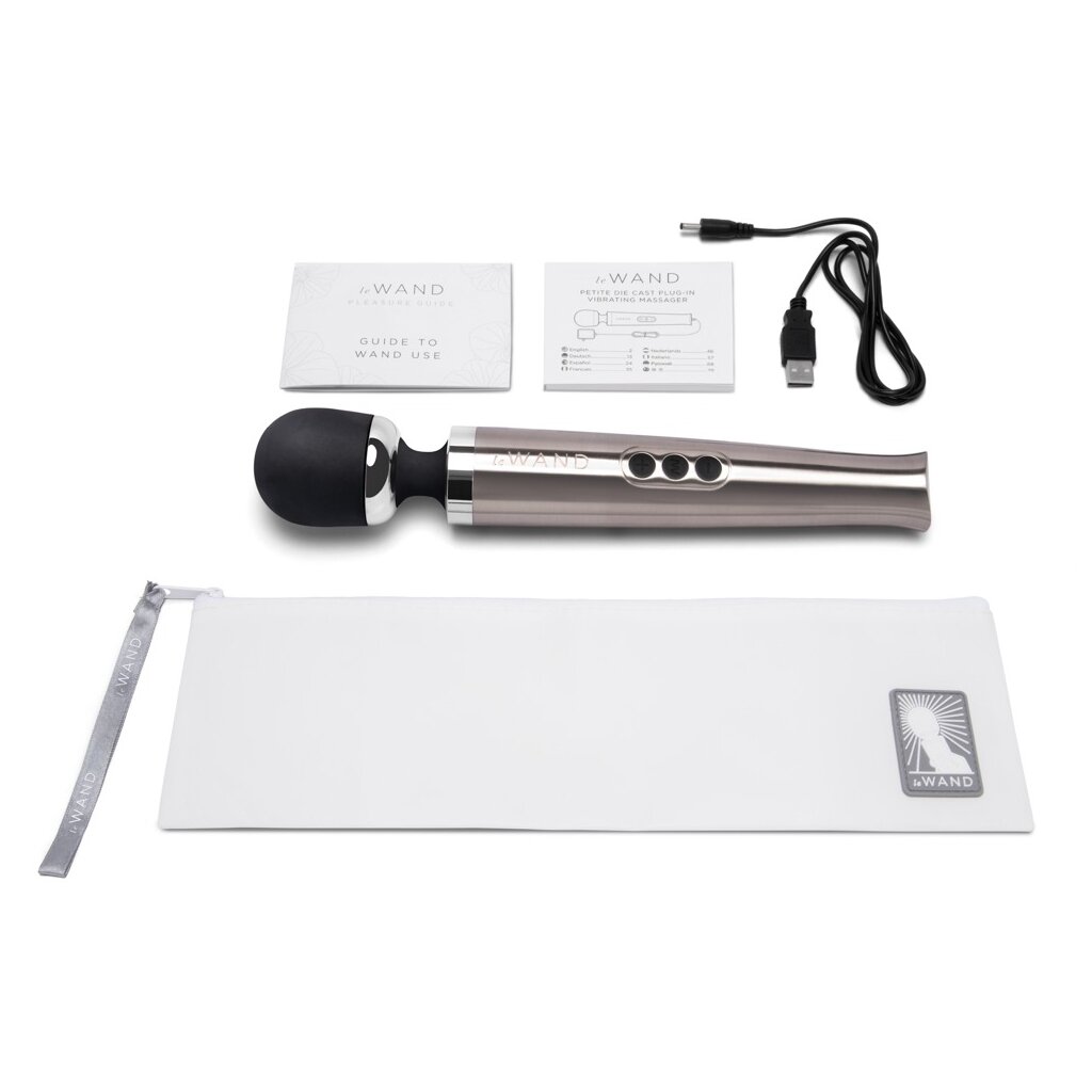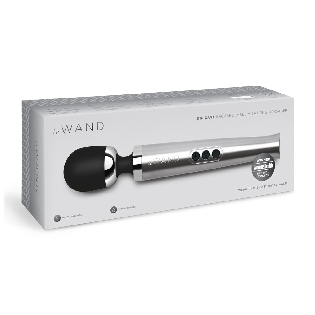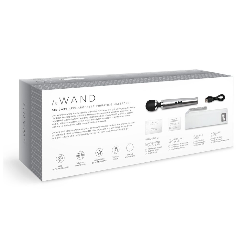 Rechargeable luxury massage wand Diecast Rechargeable by le WAND for intense massage fun. In the classic WAND design - but more compact, slightly smaller and much more handy! In addition, equipped without power cable for carefree solo and couple massages. 20 vibration modes in 10 intensities provide individual massage pleasure and can be conveniently controlled with the 3-button control on the handle.