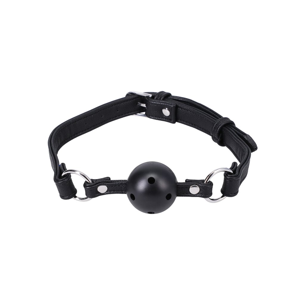 Straps of black vegan leather caress your face or that of your submissive on either side of a ball that fits most mouths.