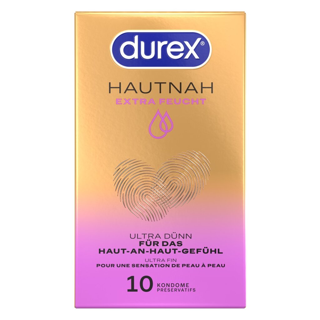 Transparente, ultradünne Kondome Hauteng Extra feucht von Durex für intensive natürliche Empfindungen. Mit extra Silikon-Gleitmittel für maximale Geschmeidigkeit. Die innovative anatomische Passform bietet im Vergleich zu herkömmlichen zylindrischen Kondomen etwas mehr Platz an den richtigen Stellen – für einfacheres Anlegen und Abrollen sowie eine bequeme Passform und ein reines Gefühl.