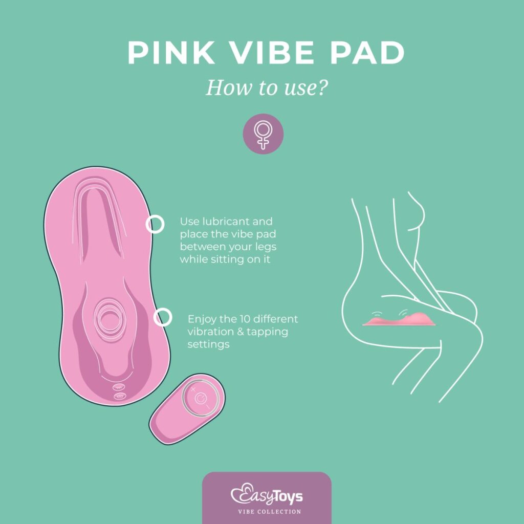 Mach Dich bereit für ein aufregendes Erlebnis mit dem Vibe Pad Tapping + Vibrating - Rosa! Erlebe duale Stimulation durch klopfende Vibrationen, die perfekt für klitorale Lust sind, und tiefgehende Vibrationen, die das gesamte Pad abdecken. Mit 10 verschiedenen Vibrationsmodi kannst Du unvergessliche Empfindungen entdecken. Das weiche, ergonomische Design des Vibe Pads sorgt für höchsten Komfort und intensive Stimulation. Genieße die freihändige Steuerung mit der Fernbedienung oder überlasse sie Deinem Partner für noch mehr Spannung. Das Vibe Pad ist ideal sowohl für den Solo- als auch den Partnergebrauch.