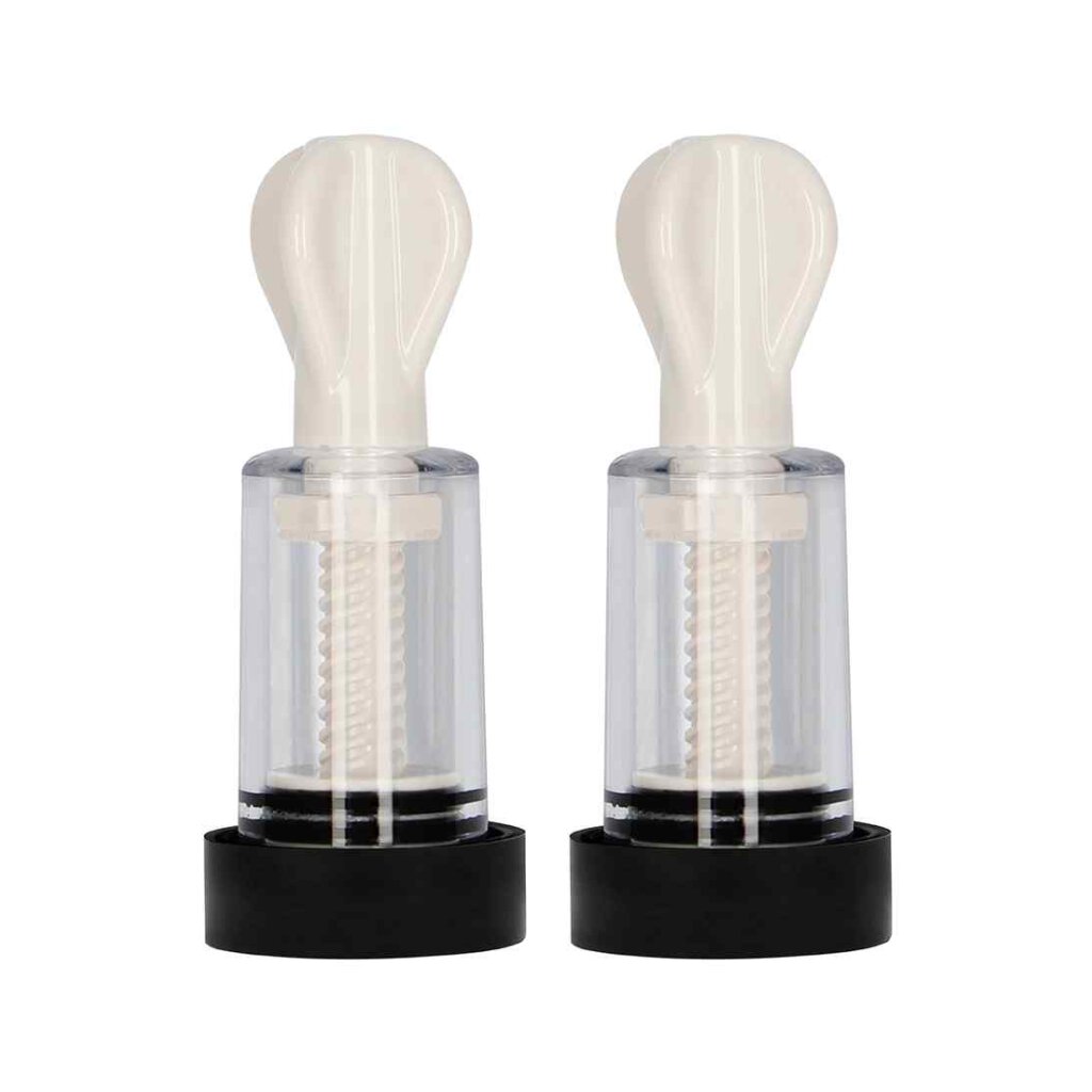 Kombinieren Sie Erregung und Vergnügen, die diese Nippelvergrößerer erzeugen, während Sie Ihre Brüste und massieren oder schröpfen und sie zusätzlich mit Strom stimulieren! Diese ELECTRO SHOCK NIPPLE TWISTERS funktionieren einfach und sind dabei äußerst effektiv! Setzen Sie die Sauger aus Silikon über Ihre Brustwarzen und drehen manuell die Drehgriffe, um die Sauger zu befestigen. Verbinden Sie die Drehgriffe mit den Kabeln an der mitgelieferten Fernbedienung, und Sie können die Intensität des Pulsierens von einem leisen Prickeln bis zu einer harten, pulsierenden Empfindung variieren! Die ELECTRO SHOCK NIPPLE TWISTERS bestehen aus hochwertigem ABS, sind in weißer/transparenter Farbe und werden paarweise geliefert. Das Set misst 11 cm (4,4") in der Länge, 4,5 cm (1,8") in der Höhe und 4,5 cm (1,8") im Durchmesser.