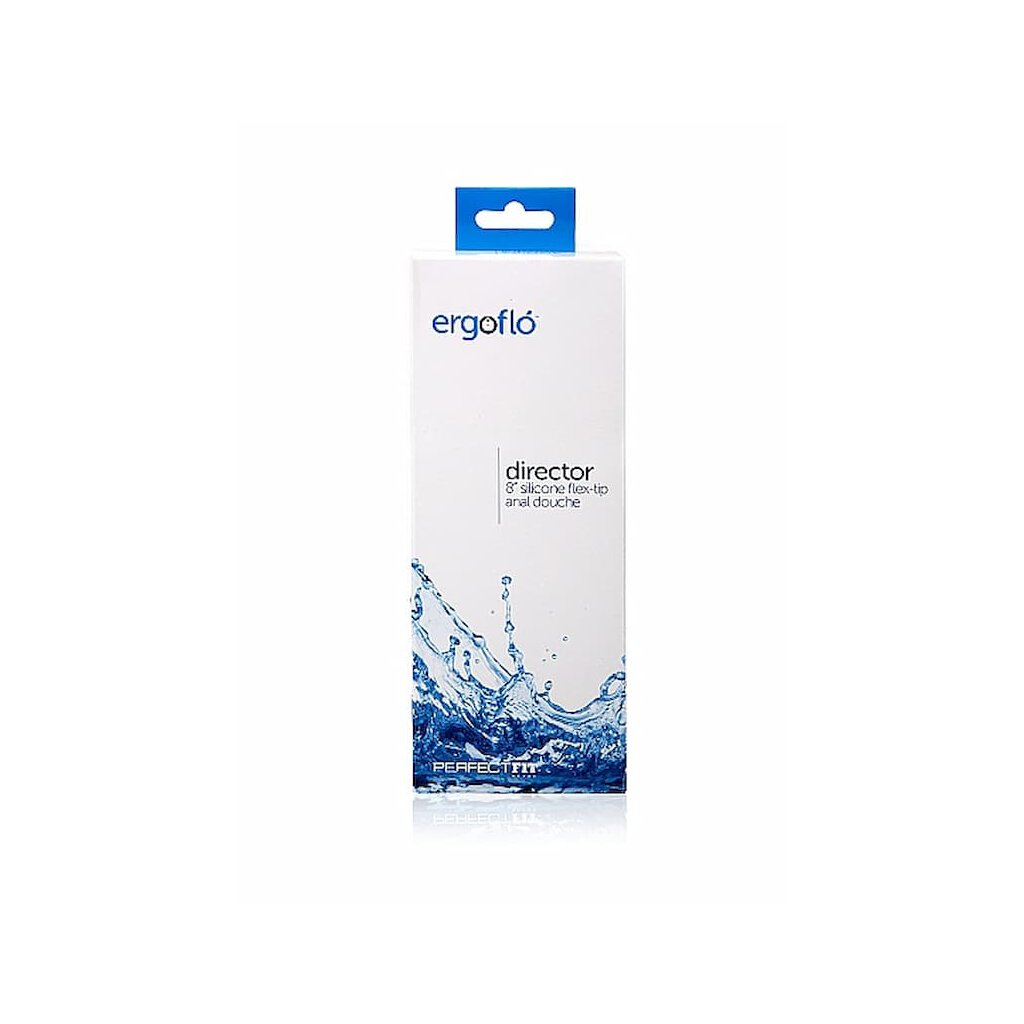 Die ergoflo director Analdusche ist mit einem medizinischen 9 oz. Ball mit Luftventiltechnologie ausgestattet, die den unangenehmen Rückfluss reduziert und weniger Nachfüllungen erfordert. Director wird mit einer 20 cm (8") langen Silikondüse mit flexibler Spitze und einer 8 cm (3") langen verstaubaren Spitze geliefert.