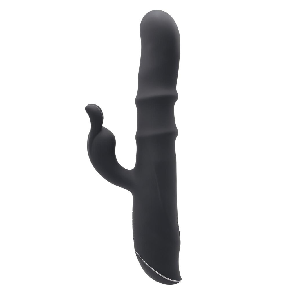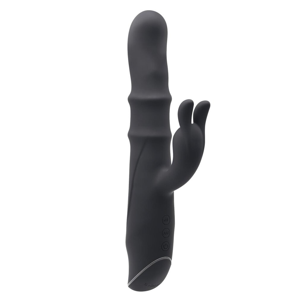 This Ringed Rabbit Vibe features 2 powerful motors that power 4 pleasurable functions! The main shaft and rabbit ear stimulator vibrate at 10 speeds simultaneously, while the head works in tandem with the up and down motion of the central rings. Control each motor separately with the illuminated 3-button control panel and take this multi-thriller into the bath or shower as it can be fully submerged! Magnetically rechargeable via USB and easy to clean. 10 vibration speeds and patterns in rabbit and shaft / Made of silicone and ABS plastic / Length: 23.1 cm / Width: 3.9 cm / Insertable length: 12.7 cm / Insertable diameter: 3.6 cm / Waterproof & submersible / Phthalate and latex free / Magnetically rechargeable, USB cable included