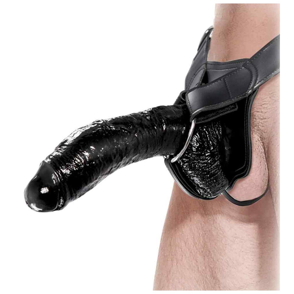 Jederzeit steif und bereit! Hohler Naturdildo mit prallen Hoden und elastischem Umschnallgurt. Auf dem Penis getragen für mehr Länge und Umfang oder für den heißen Sex-Spaß Pegging. Umschnallgurt verstellbar.