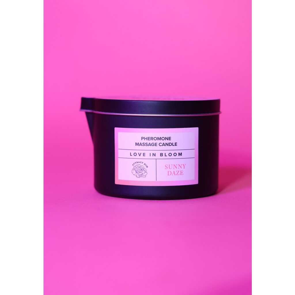 La bougie de massage aux phéromones Sunny Daze de Bloom se transforme en une huile chaude et nourrissante qui apaise la peau et sublime les moments de massage.