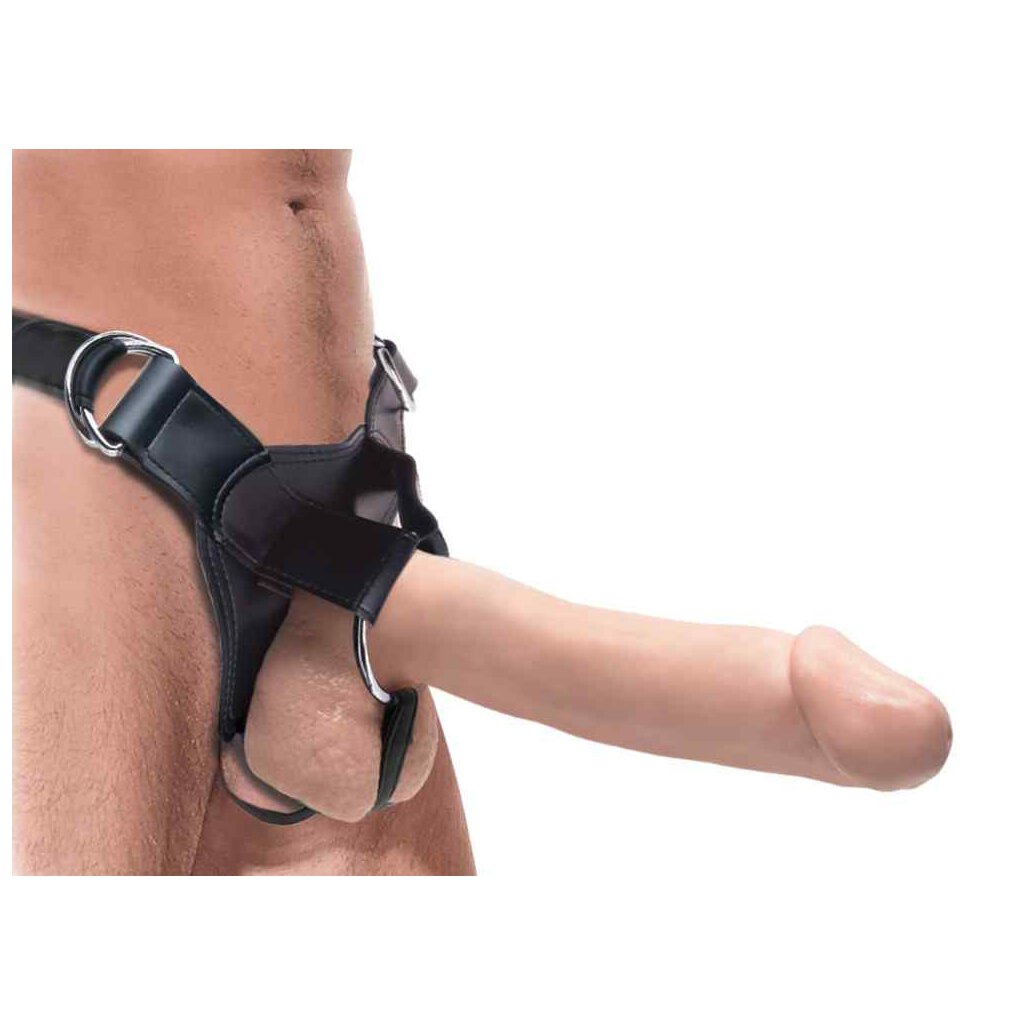 Gode réaliste et creux avec des testicules bombées et un harnais de sangle extensible. Il peut être porté sur le pénis pour plus de longueur et de circonférence ou utilisé pour un plaisir chaud de pegging. Le harnais de la sangle est réglable.