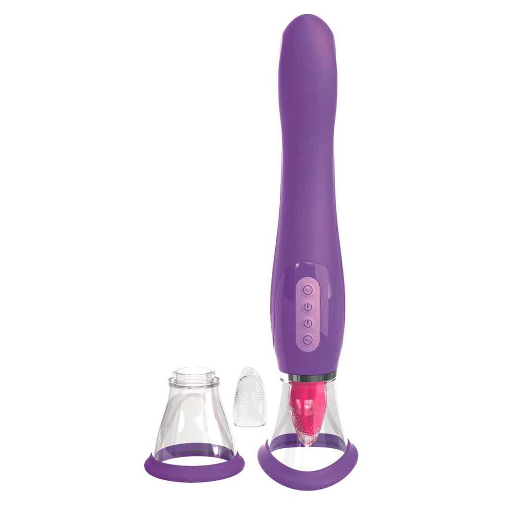 Ce vibromasseur 3 en 1 répond à tous les désirs : la tige légèrement incurvée atteint facilement le point G et le stimule avec 10 modes de vibration. L'autre côté du jouet 3-en-1 possède un stimulateur clitoridien avec 7 modes de mouvement, et une ventouse avec 3 modèles d'aspiration qui crée un vide en appuyant sur un bouton. Il existe une fonction de libération du vide qui garantit un plaisir sûr. La ventouse est amovible et toutes les fonctions peuvent être contrôlées séparément. Il est également étanche, ce qui permet de s'amuser en toute sécurité dans le bain ou sous la douche. Comprend un câble USB.