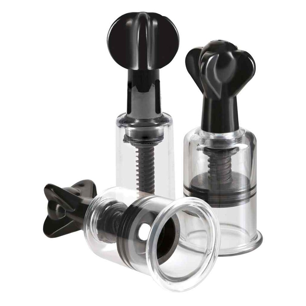 Pour les mamelons extrêmement sensibles. Des suceurs de mamelons avec une aspiration extra forte, grâce au mécanisme de torsion. La même chose se produit sur le clitoris et est encore plus excitante.