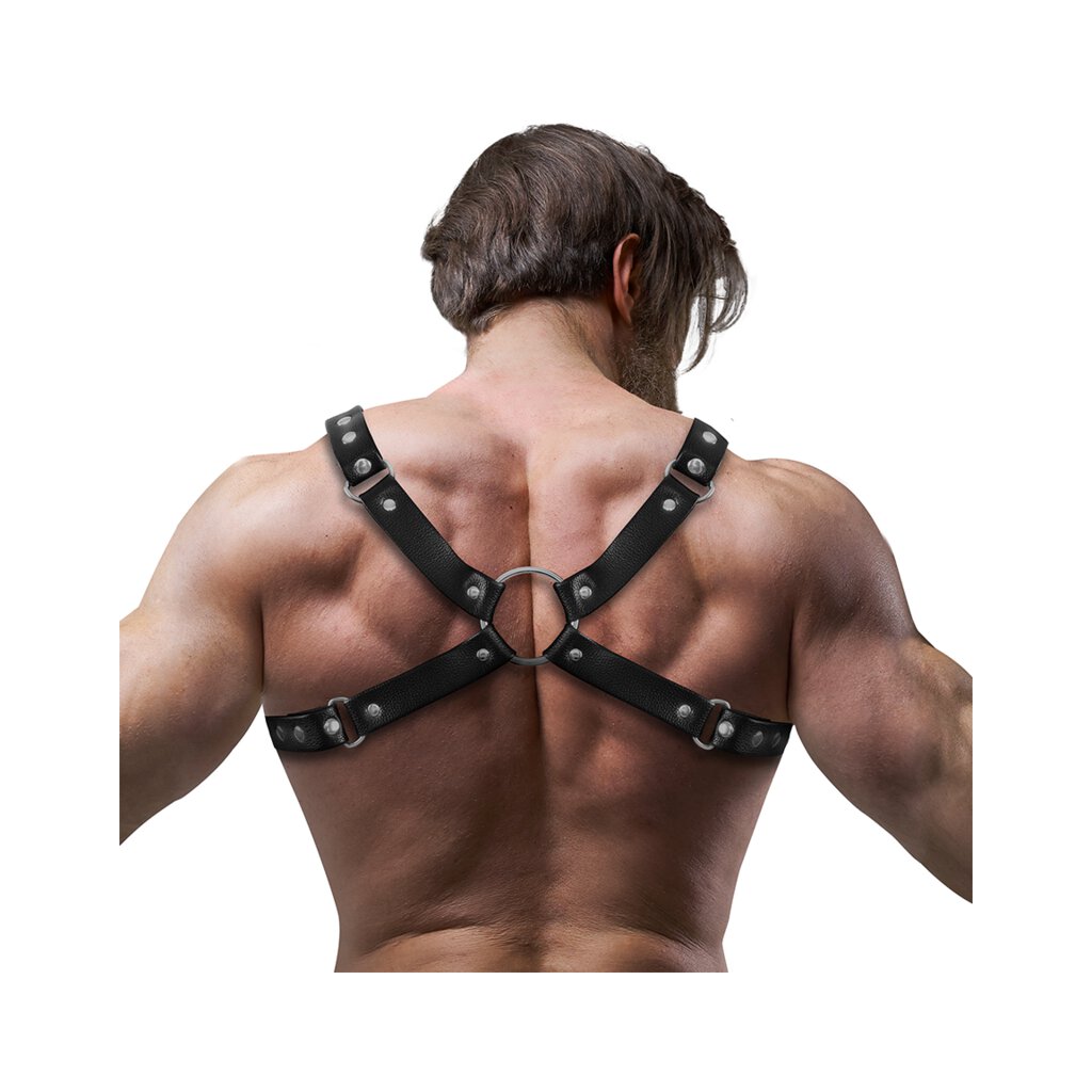 Unleash your power and dominate the dance floor with the chest harness! This front harness with sexy structure has been designed to emphasise the male figure and enhance your sexual image. Thanks to its adaptable material, it is easy to put on and has a flexible size that adapts perfectly to your body. Its multiple straps allow you to position it perfectly around your shoulders and chest, emphasising your attributes in a unique way. If you want to stand out at any event or simply add a touch of sensuality to your look, the front harness is the perfect choice. Size M/L fully adjustable / Made from vegan leather