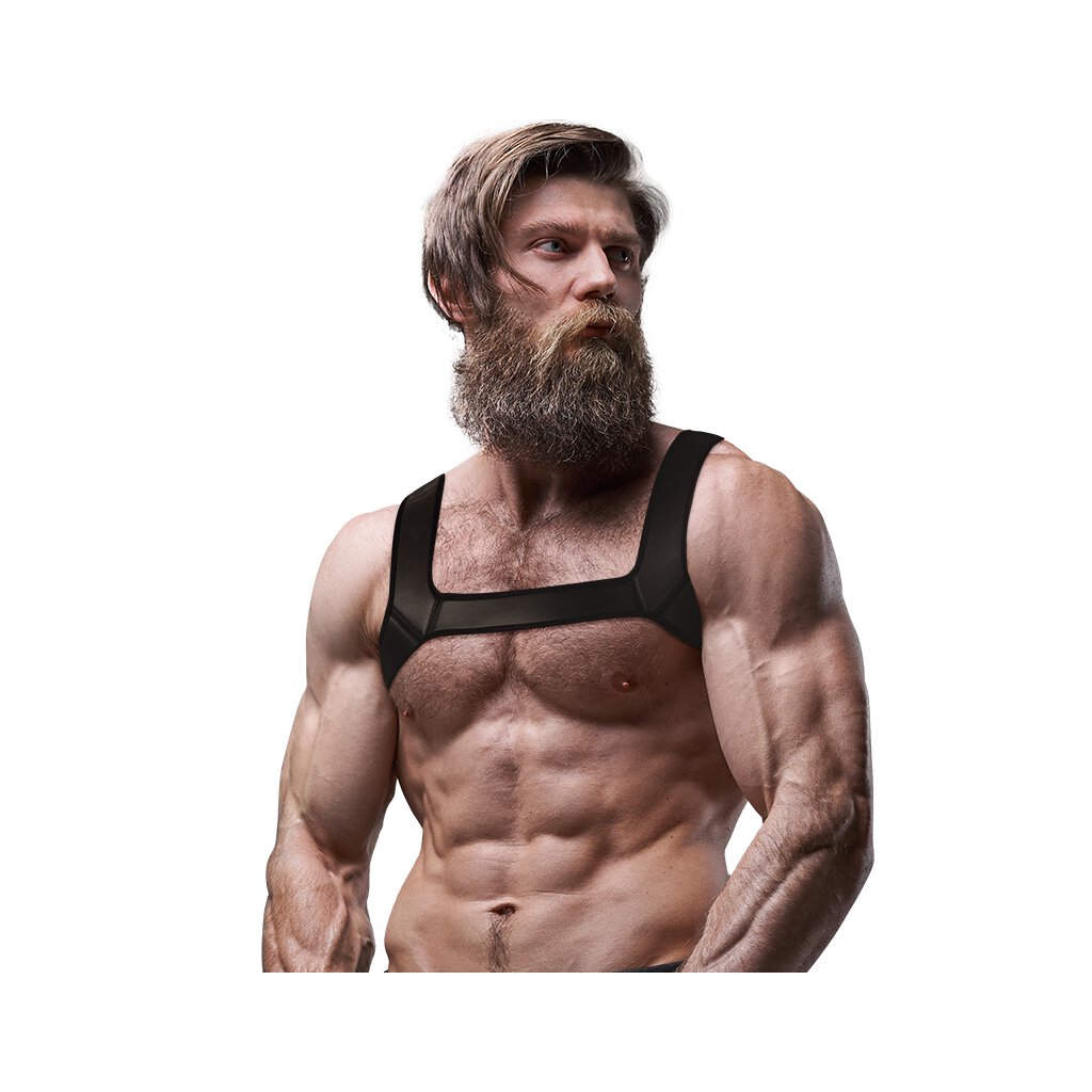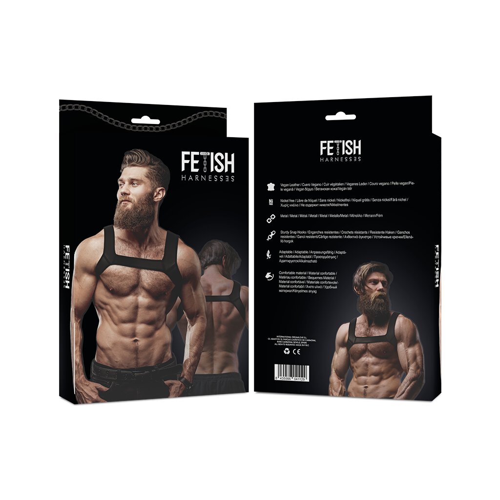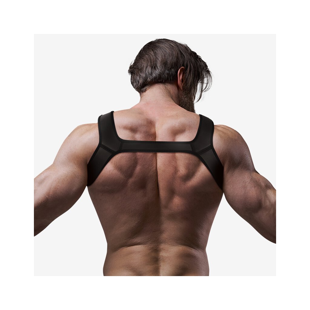 Unleash your power and dominate the dance floor with this chest harness! This front harness with sexy structure has been designed to emphasise the male figure and enhance your sexual image. Thanks to its adaptable material, it is easy to put on and has a flexible size that adapts perfectly to your body. The material ensures an excellent fit on the upper body so that you look flawless with every movement. Its numerous straps allow you to position it perfectly around your shoulders and chest and emphasise your attributes in a unique way. If you want to stand out at every event or simply add a touch of sensuality to your look, the front harness is the perfect choice. Size L / Made from vegan leather