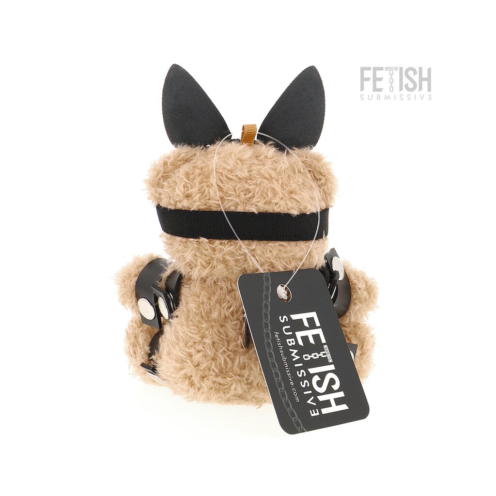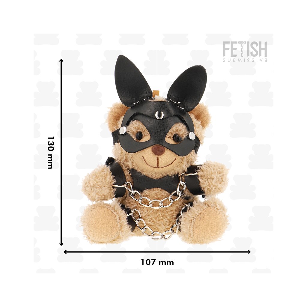Each teddy bear is made of high-quality materials and has a look that ranges from sweet to rebellious. The details and accessories reflect a provocative style that combines cuteness and boldness. The harnesses are made of soft leather and lace ribbons and perfectly fit their petite figures. They wear masks that cover part of their face, giving them a mysterious and charming look. The colorful gags give them a cheeky and playful touch, while small chains are wrapped around their plush bodies, adding texture and an impressive visual effect.