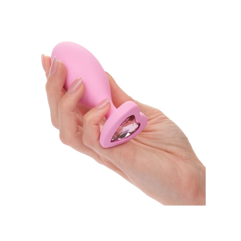 Indulge in your naughty fantasies and open yourself up to some exciting backdoor play with the First Time Crystal Booty Duo. This set includes 2 graduated anal plugs with glittering heart crystal inlay, curvy plug design and soft silicone body. To enjoy all that the exciting world of anal play has to offer, training is in order to ensure total safety and satisfaction. As you expand your horizons with each successive step, you can concentrate on the game. The flexible plugs are made of smooth, seamless silicone. This body-safe material is unscented and phthalate-free to keep your most sensitive parts happy and healthy. Product dimensions: 7 x 2.5 cm (medium) | 9 x 3.25 cm (large) / Waterproof / Material: Silicone