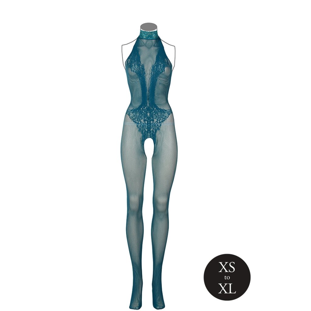 Fishnet and Lace Bodystocking Blue Onesize - Queensize