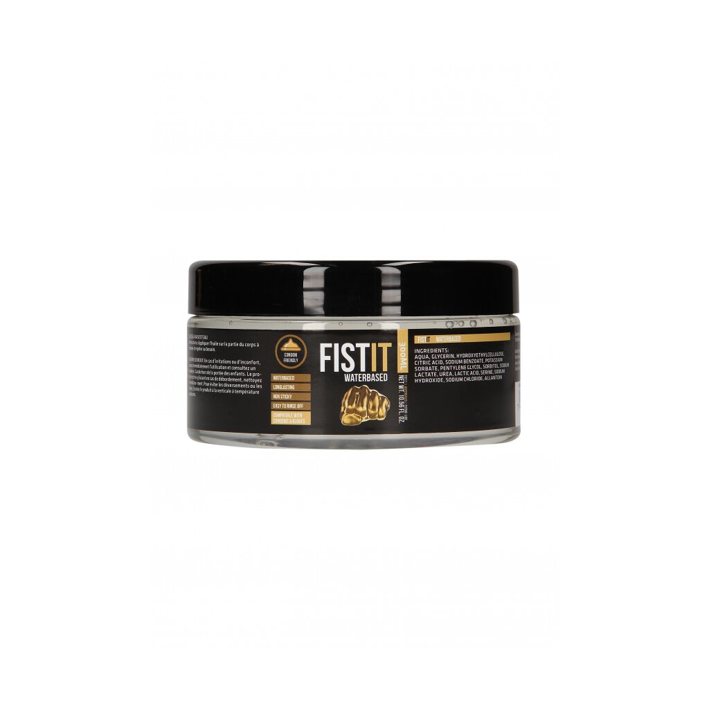 Fist It est un lubrifiant à base d'eau. Convient pour une utilisation avec des préservatifs en latex. Testé dermatologiquement, il est non gras, incolore, inodore et de goût neutre. Appliquez autant de gel que vous le souhaitez sur la partie du corps souhaitée et répétez autant de fois que vous le souhaitez. Volume du produit : 300 ml / Ingrédients : Aqua, Glycerin, Hydroxyethylcellulose, Citric Acid, Sodium Benzoate, Potassium Sorbate, Pentylene Glycol, Sorbitol, Sodium Lactate, Urea, Lactic Acid, Serine, Sodium Hydroxide, Sodium Chloride, Allantoin
