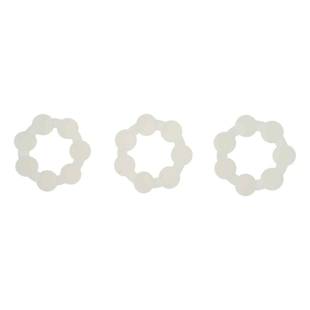 Stand your ground! Our love ring with balls in a pack of 3 (21 mm) can help you do that! This pack contains 3 love rings with balls with a diameter of 21 mm. The 7 balls provide a more intense steadiness. The love ring is placed over your shaft and reduces the backflow of blood. This will strengthen your erection and improve your stamina, allowing you to give yourself completely to your beloved.