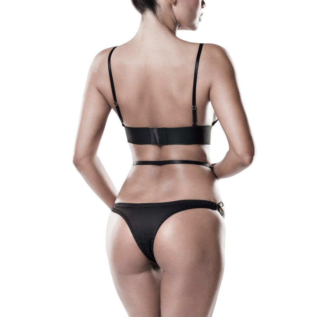 Bralette mit floraler Spitze und elastischen Zierbändern, inklusive passendem Brazilian Slip. Größe S / Materialzusammensetzung: Bra: 100% Polyester, Slip: 92% Polyamid, 8% Elasthan
