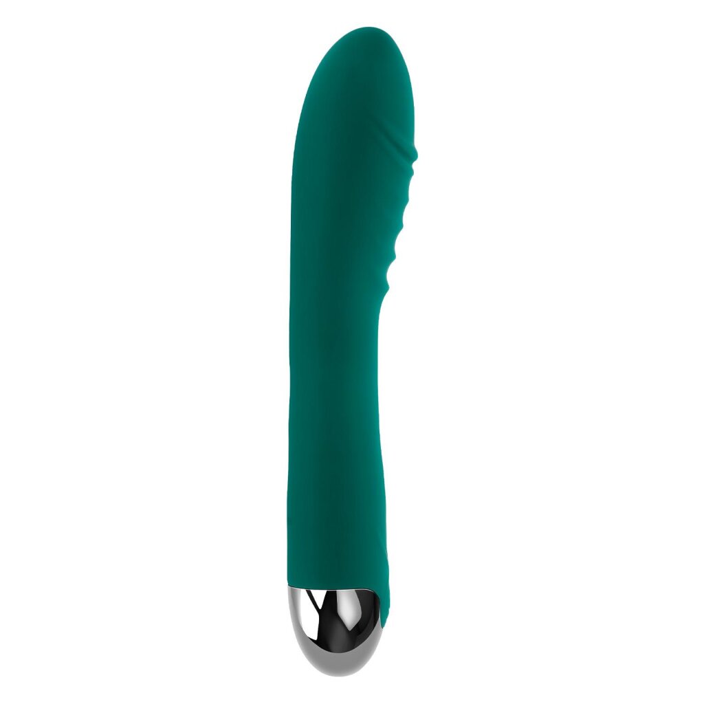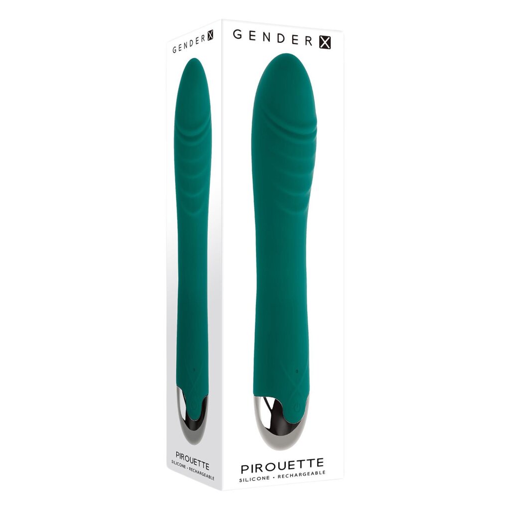 Erleben Sie Pirouetten der Lust mit diesem wirbelnden Vibrator, der tiefe Vibrationen ausstrahlt und sanft im Schaft kreist. Diese beiden Empfindungen verschmelzen zu einer kraftvollen Kombination in der strukturierten, bauchigen Form, die in einer spitz zulaufenden Spitze endet.