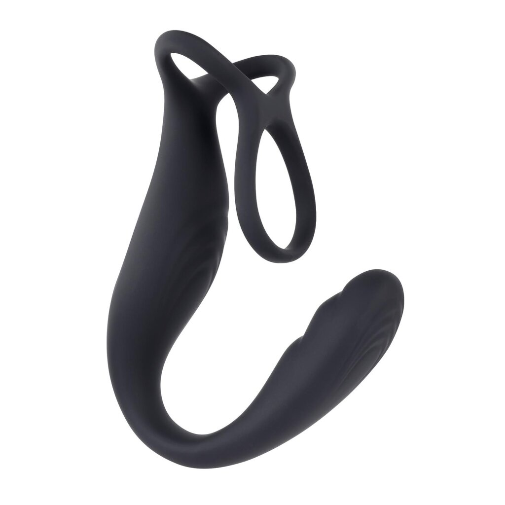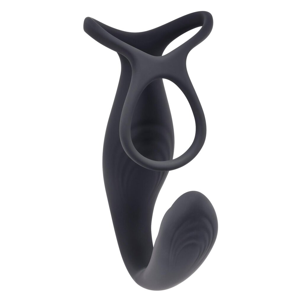 The Wrangler is an innovative, three-part toy with two powerful motors that are controlled independently by remote control. The vibrating centerpiece and the facing, textured, oval shaft are connected to a thin, flexible neck, while two stretchy loops bend out from the other end to create a variety of possibilities.