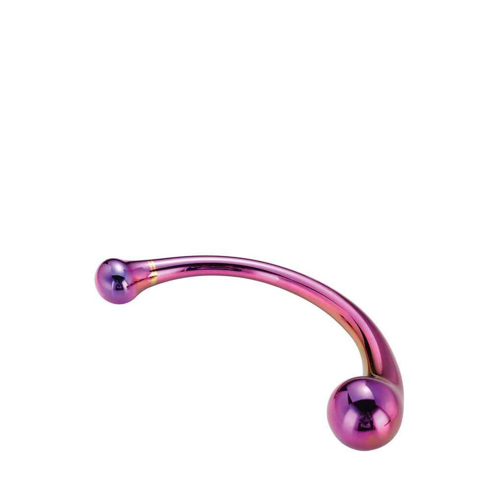 This curved wand dildo is made of Borosilicate glass which is very strong, non-porous, hygienic and safe for the body. The curved shape is excellent for precision stimulation, the ball shaped ends are perfect to reach the G-spot and for a variation of pressure and sensations. Truly versatile and truly exciting, with a glamorous look and soap bubble colours.