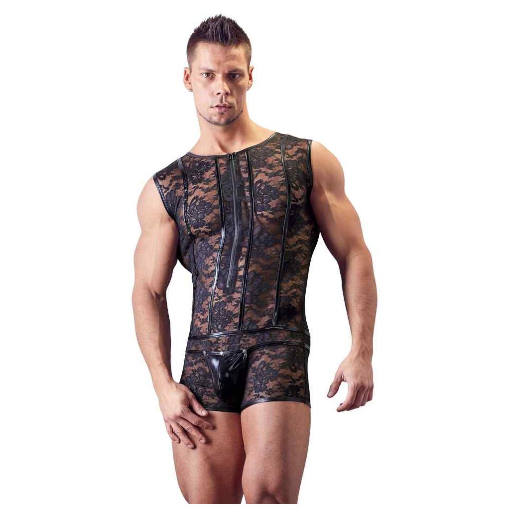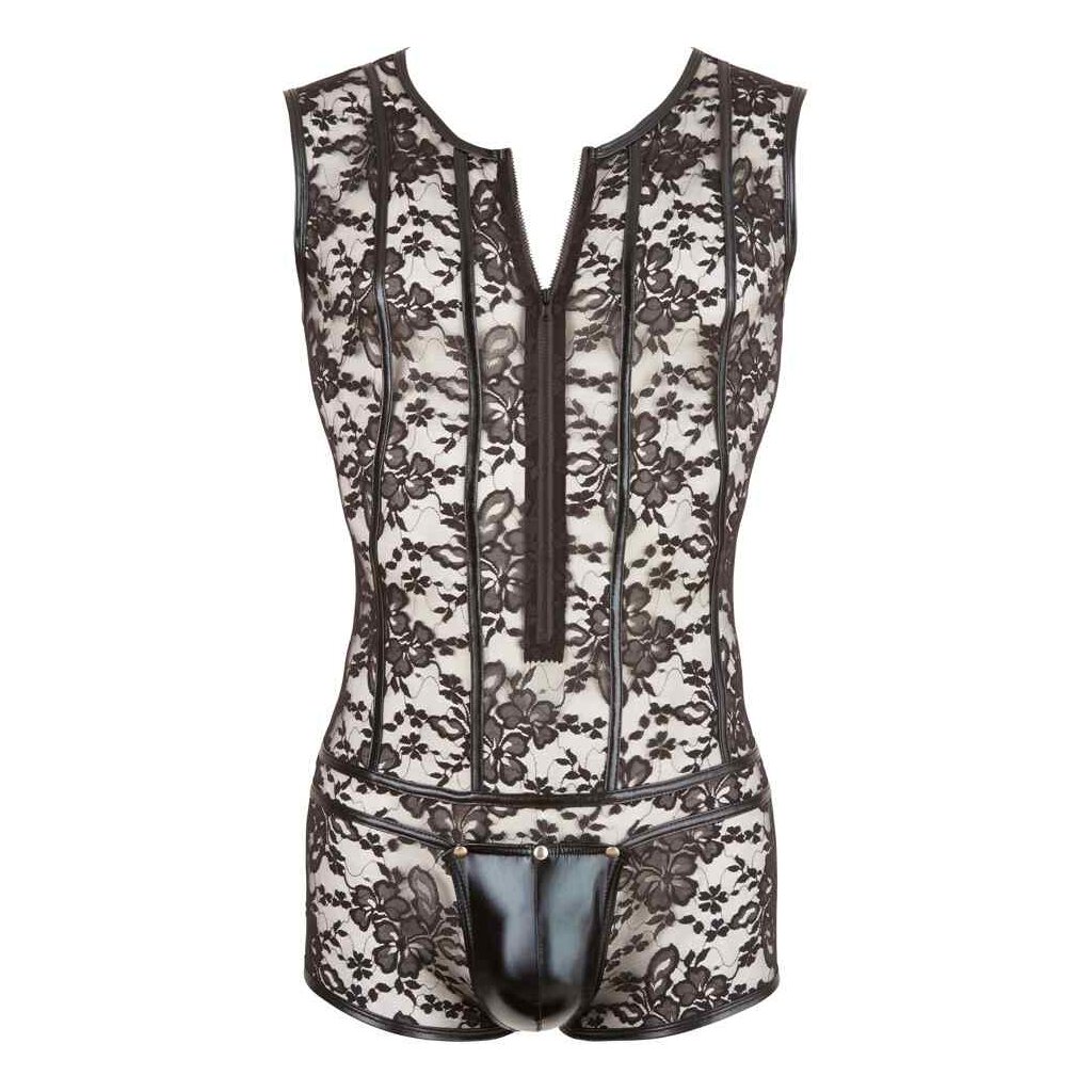 Raffinierter Material-Mix mit erregenden Extras! Dieser schwarze Body mit Front-Zip überzeugt in einer aufregenden Kombination aus elastischer, geblümter Spitze und schmalen Wetlook-Streifen. Mithilfe der eindrucksvollen Swell-Funktion lassen Sie Ihre geballte Manneskraft erregend voluminös erscheinen, indem Sie Penis und Hoden spielend leicht durch das innen liegende Stretchloch in den Beutel schieben... Beutel aufknöpfbar. 90% Polyamid, 10% Elasthan.