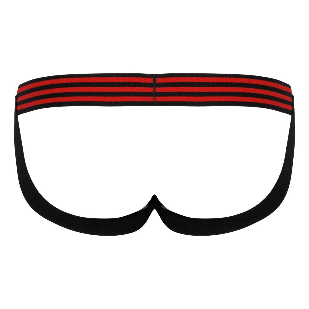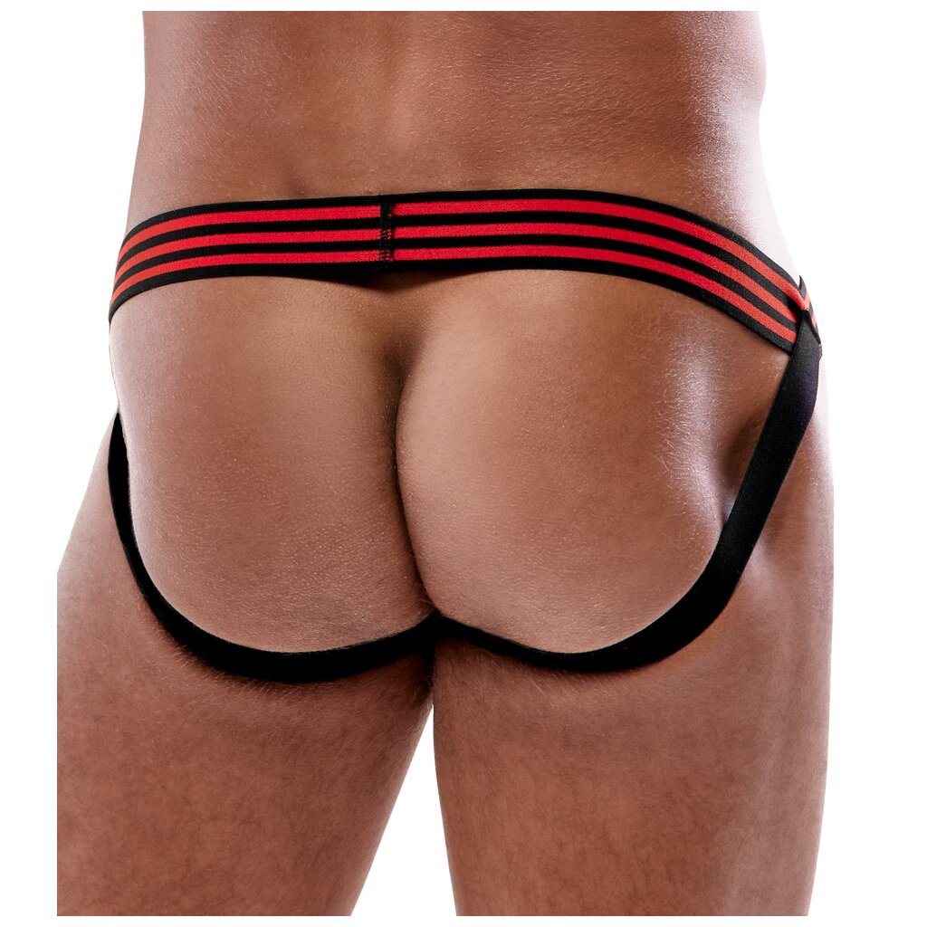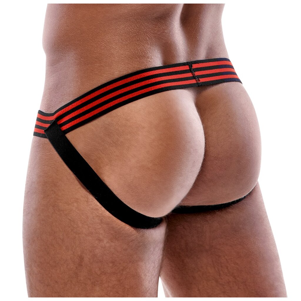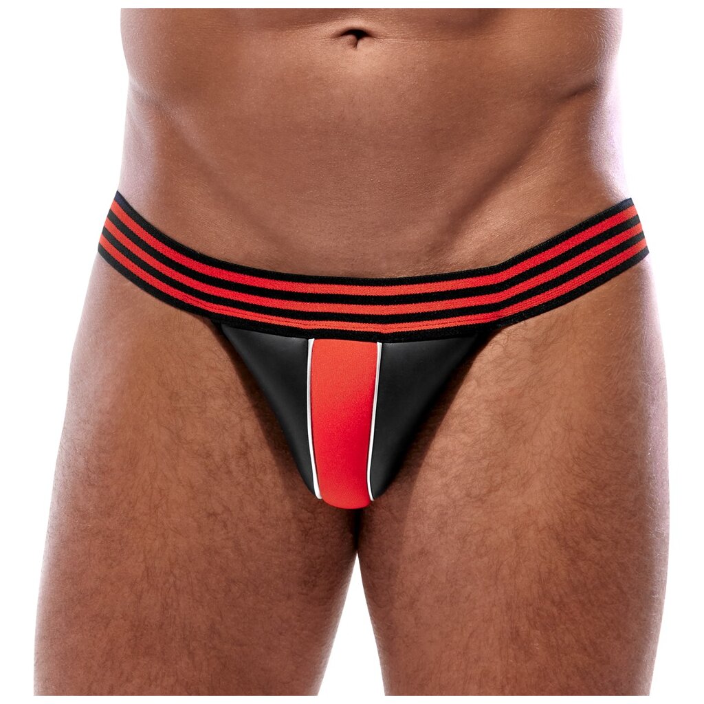 Pofreier Jock von Svenjoyment in extravaganter schwarzer Neopren-Optik mit roten Kontrasten. Breites komfortables Streifen-Bundgummi.