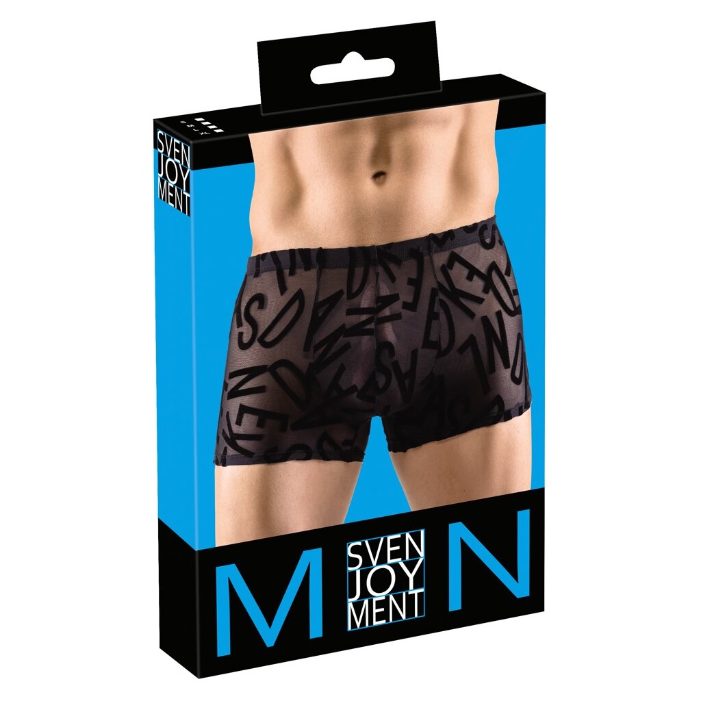 Schwarze transparente Pants von Svenjoyment mit trendigem Buchstaben-Print. Angenehm elastisch für hohen Tragekomfort und uneingeschränkte Bewegungsfreiheit.