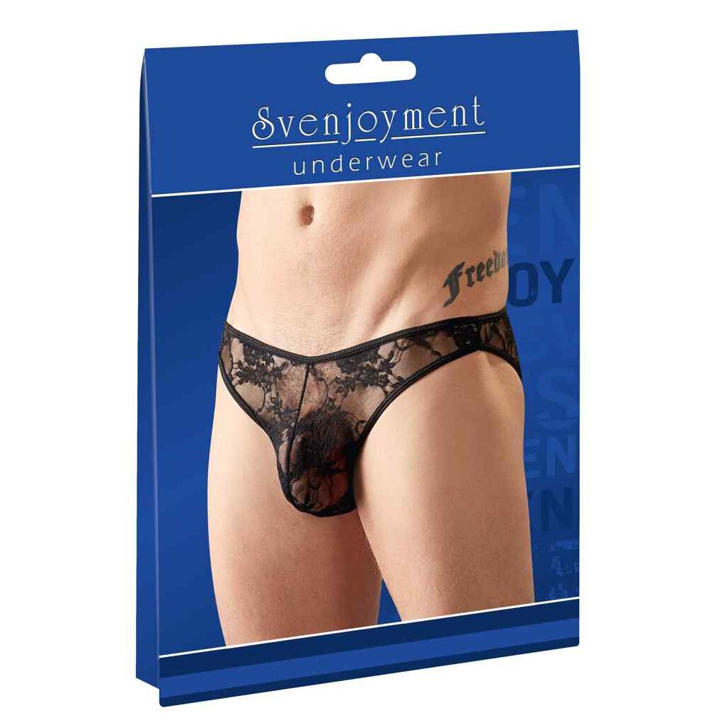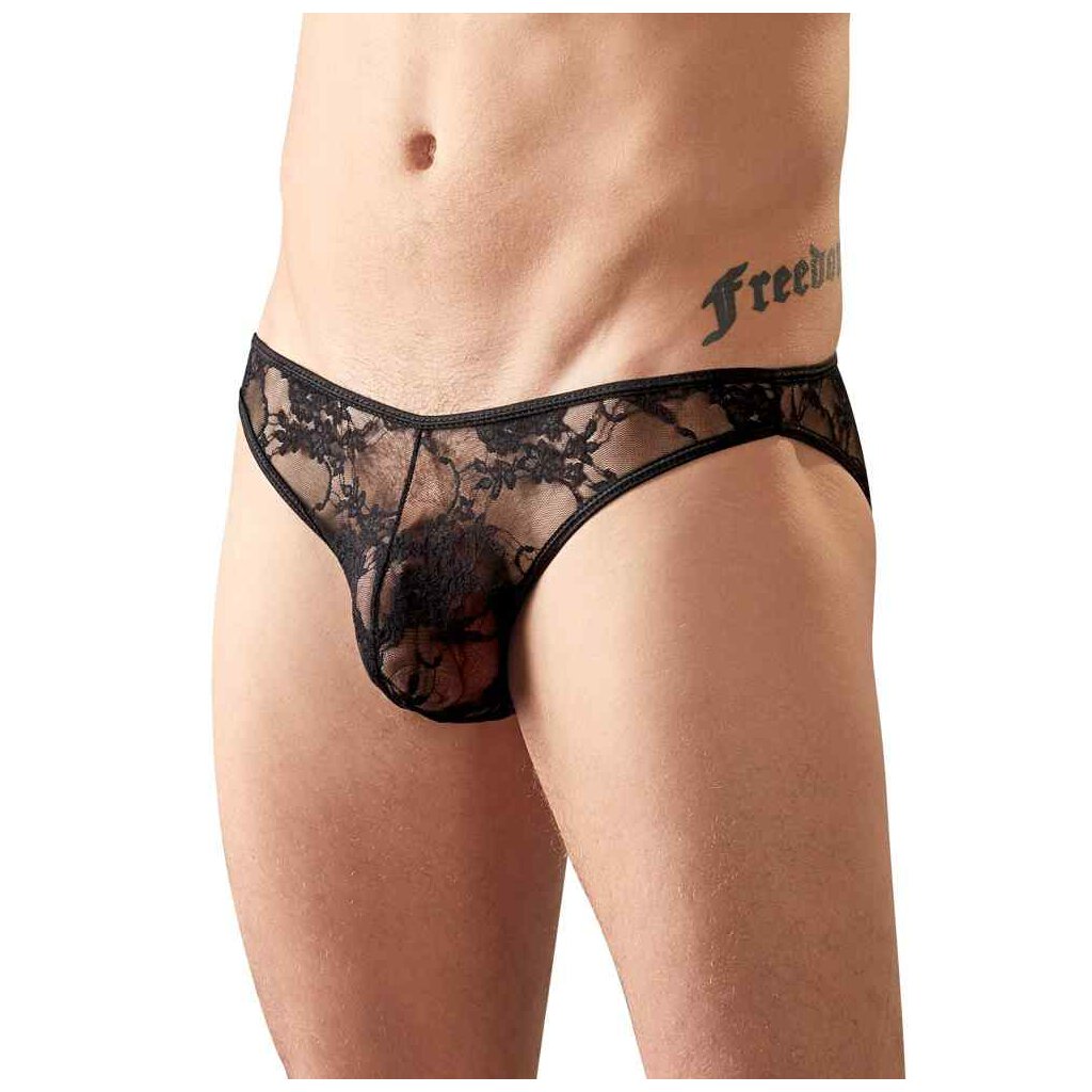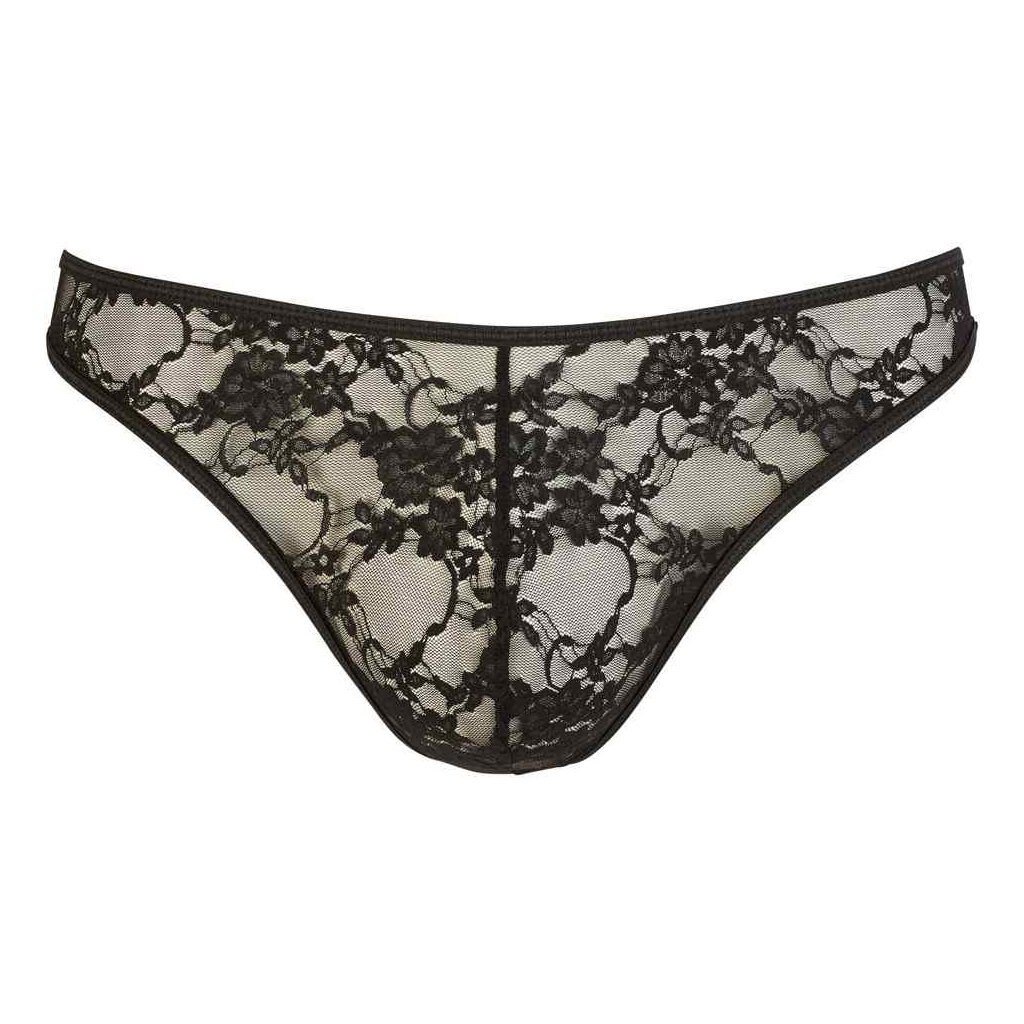 Der schwarze Slip aus elastischer Spitze sorgt für die perfekte Passform. Säume schmal eingefasst.