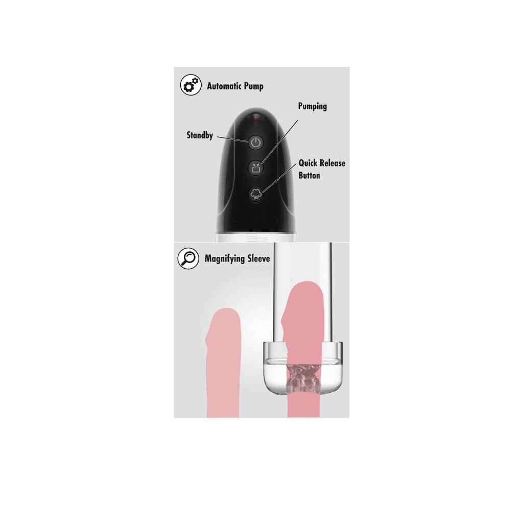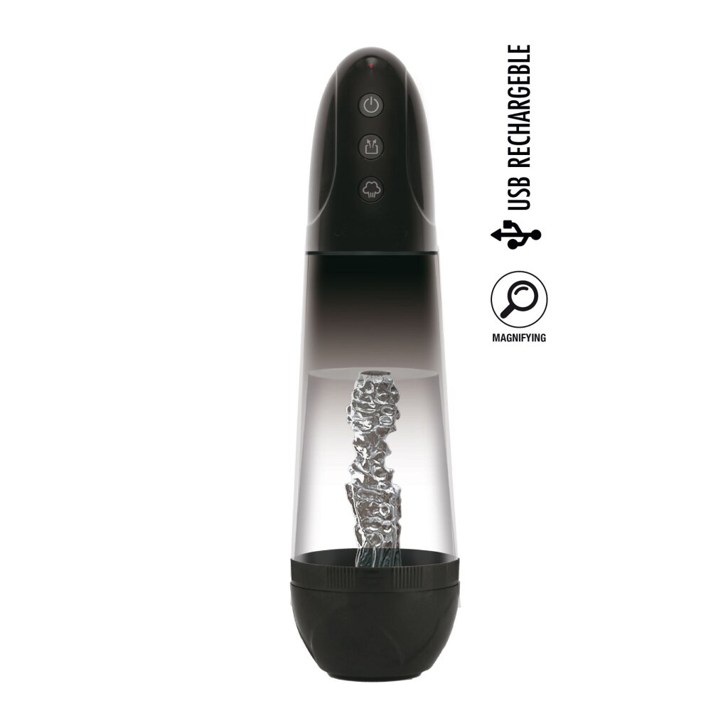 FUSION X de HIDDEN DESIRE est la collection ultime de pompes à pénis, conçue pour ceux qui osent repousser les limites du plaisir. La pompe à pénis automatique à manchon grossissant est exactement ce que vous recherchiez pour obtenir plus de longueur, de circonférence et de stimulation. Glissez votre pénis dans le tube, maintenez-le contre votre entrejambe et démarrez le moteur de pompage automatique ! Le manchon cristallin fonctionne comme une loupe qui fournit une stimulation visuelle incroyable. Le tunnel de texture du manchon combiné à la succion automatique, aux caresses et à la stimulation visuelle procure le plaisir ultime. Sélectionnez le mode d'aspiration le plus confortable et regardez votre pénis grossir et durcir. Préparez-vous à augmenter votre taille et votre confiance en vous avec FUSION X PENIS PUMPS !