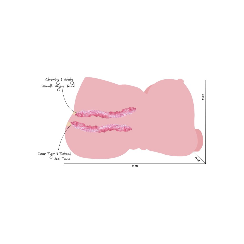Featuring both vaginal and anal entries with deeply textured tunnels, it delivers intense dual stimulation. With generous dimensions of 33 x 33 x 19 cm, it’s designed to provide full-body pleasure during solo sessions that feel anything but solo.