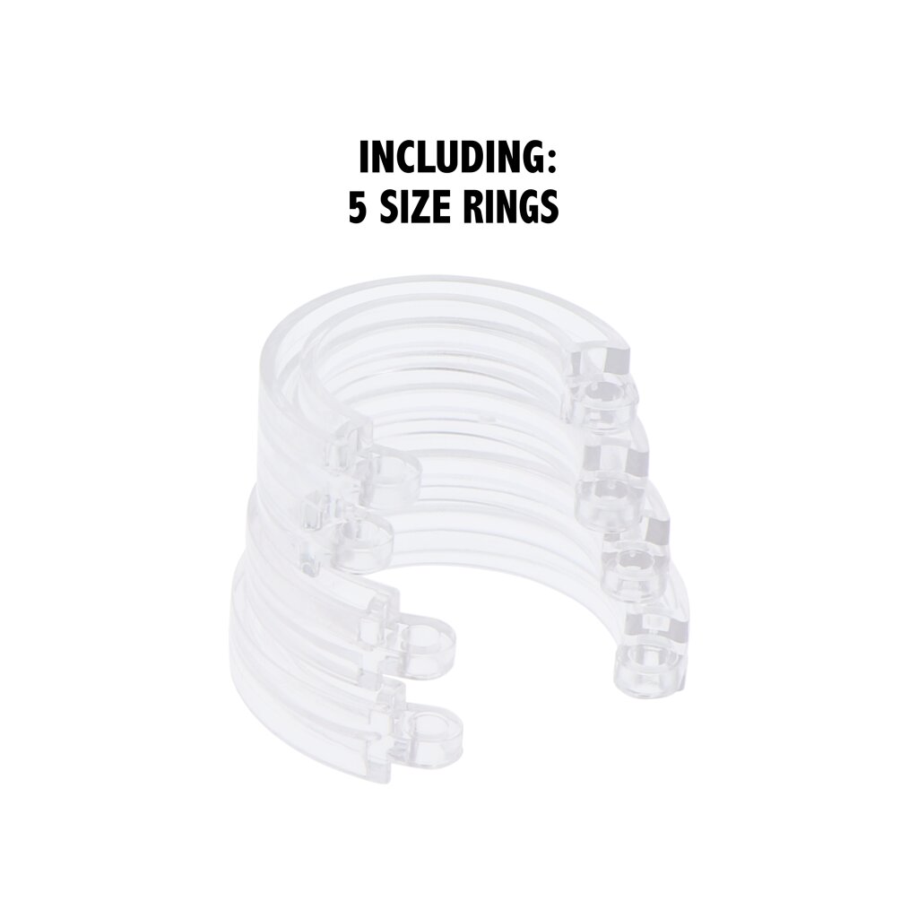 Mit einer Gesamtlänge von 11 cm und einer einführbaren Länge von 8 cm lässt sich der Cage individuell anpassen. Das Set umfasst fünf unterschiedlich große Ringe (3,5 cm, 3,8 cm, 4,2 cm, 4,5 cm und 4,8 cm), Ersatzstifte und Schläuche, um die perfekte Passform für jeden Träger zu gewährleisten. Der Käfig kann mit dem beiliegenden Vorhängeschloss oder nummerierten Sicherheitstags gesichert werden – ideal für aufregende Kontrolle und vertrauensvolles Spiel.