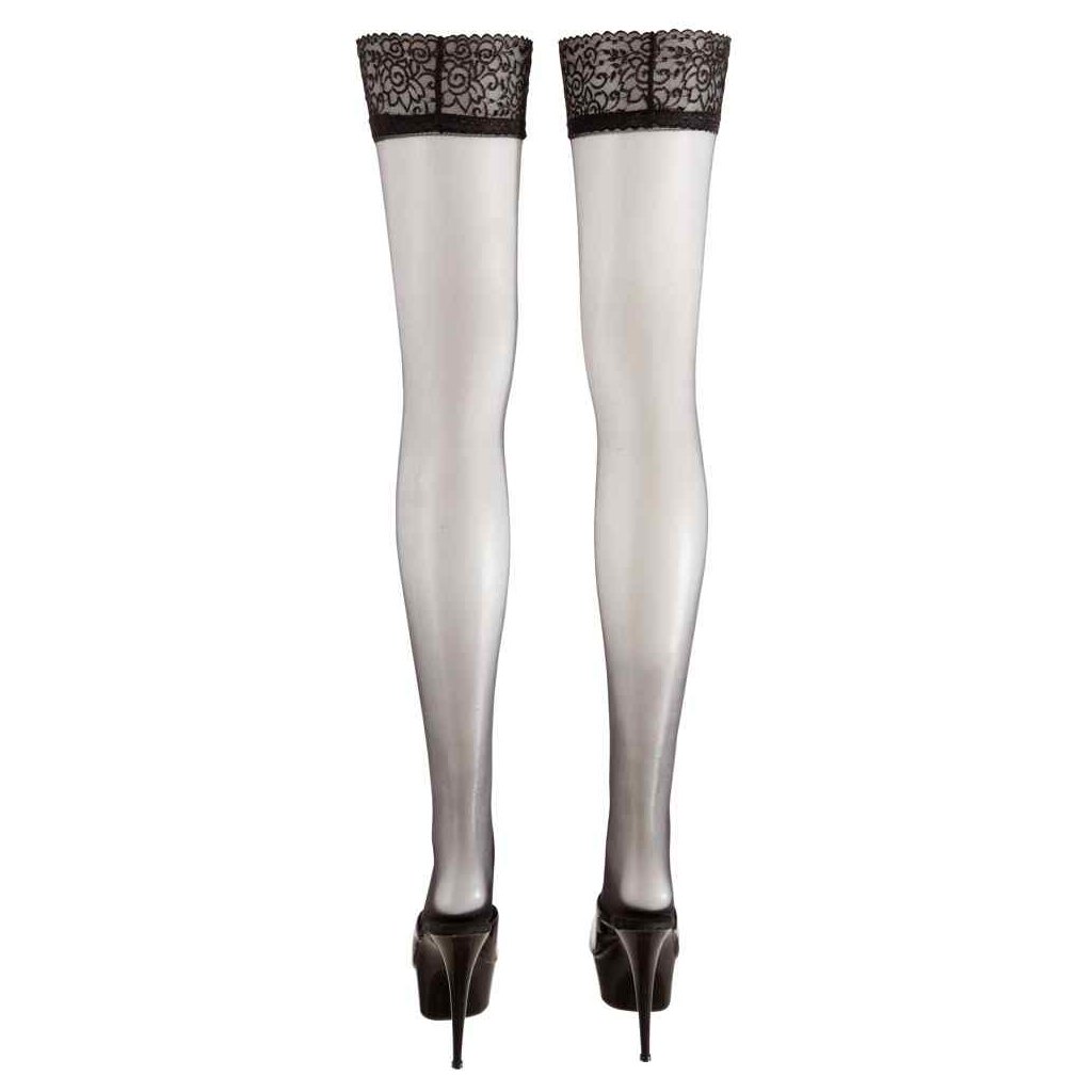 Jarretelles avec une belle partie supérieure en dentelle. Avec une doublure en silicone pour un ajustement antidérapant. Certifié Oeko-Tex.