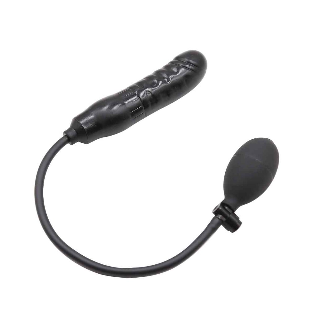 Der schwarze aufblasbare Dildo hat eine glatte Oberfläche und lässt sich leicht einführen. Verwenden Sie nach dem Einführen vorsichtig die Handpumpe, um den Dildo aufzublasen, oder blasen Sie ihn vor dem Gebrauch auf. An der Handpumpe befindet sich ein Druckentlastungsknopf, bei dessen Betätigung die Luft aus dem Dildo entweicht.