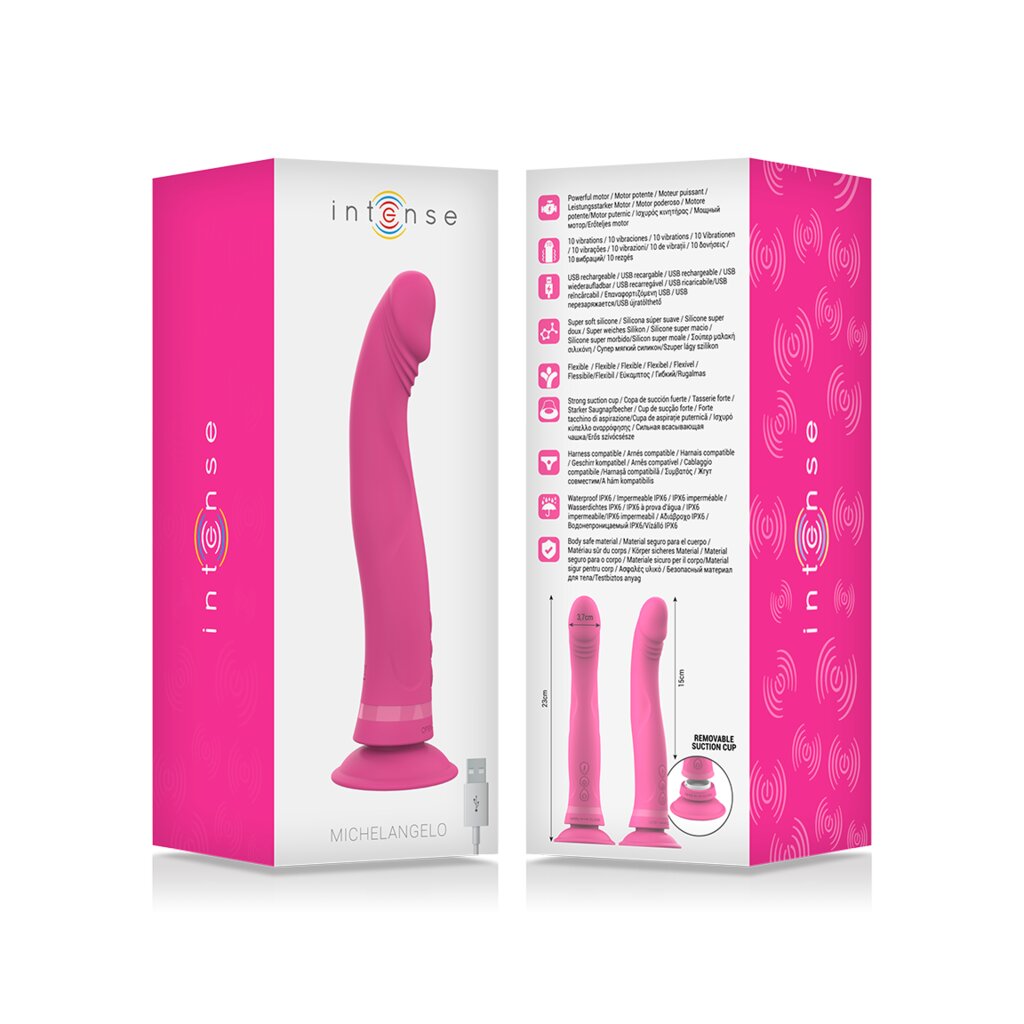 Intense Michelangelo is the premium quality, super soft silicone vibrator, dual density: maximum sensation, density and flexibility. With its extra powerful suction cup you can adhere it to any surface. Intense™ Michelangelo with powerful vibration motor.