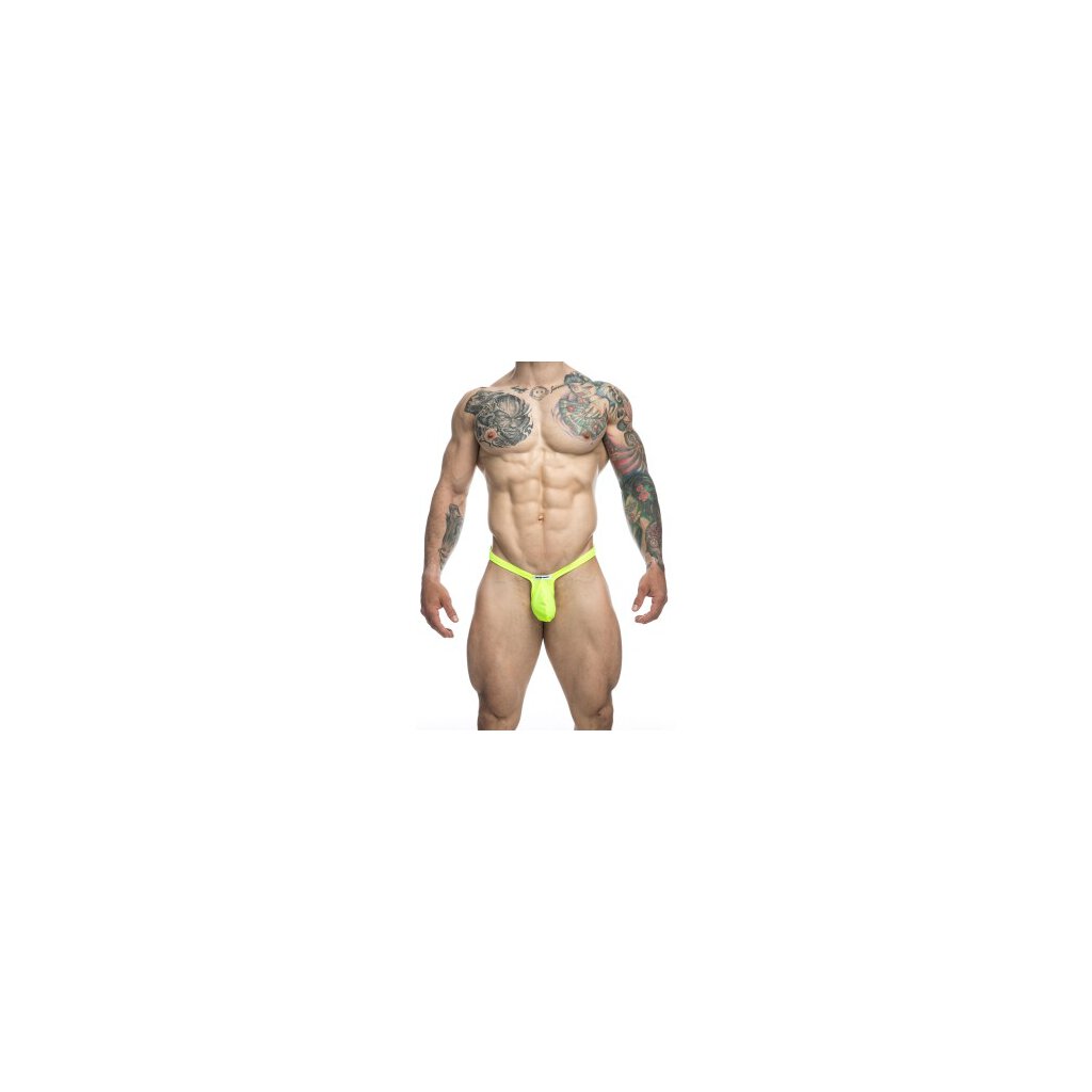 - The Justin+Simon men's thong Bulge is made of 78% spandex and 22% polyamide.