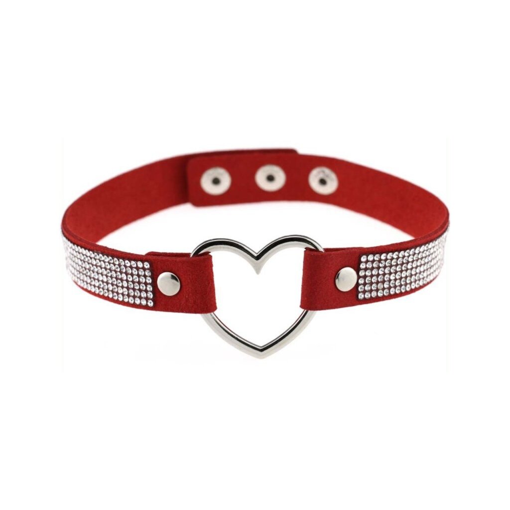 - This red heart rhinestone necklace is a piece of jewelry consisting of a 1.8 cm wide ribbon with shiny rhinestones.