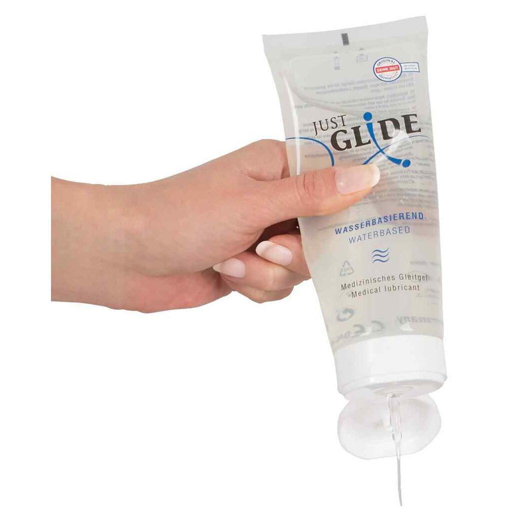 Le lubrifiant à base d'eau Just Glide est 100% végétalien et offre une lubrification longue durée. Il convient également aux peaux sensibles. Il est exempt d'huile et non gras. Il se lave facilement. Peut être utilisé sans danger avec les préservatifs en latex. Inodore et sans goût.