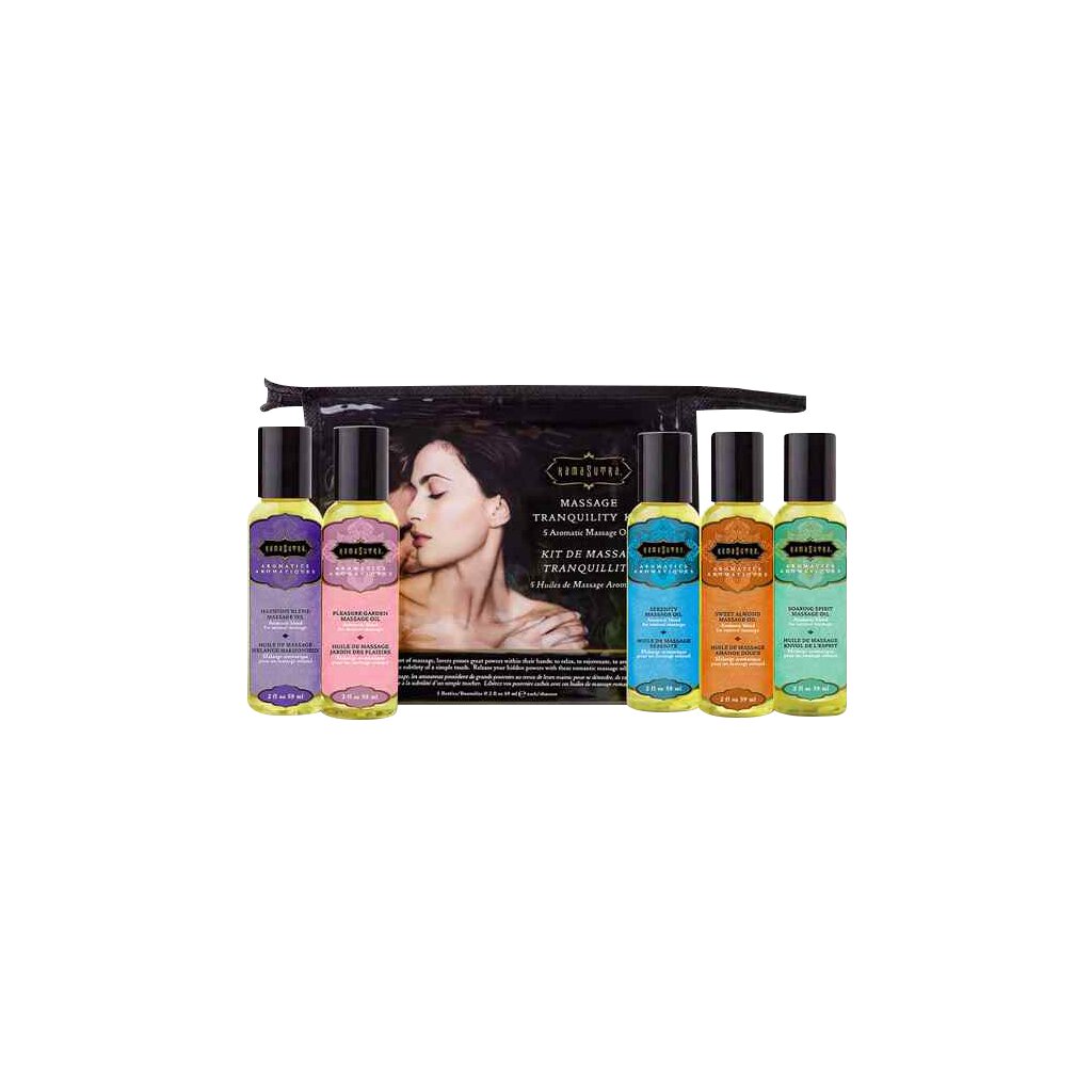 Essayez les cinq mélanges d'huiles de massage Kama Sutra Aromatics avec ce kit de voyage. Comprend cinq petites huiles de massage dans un étui de voyage à fermeture éclair. Les tailles approuvées par la TSA sont parfaites pour les voyages. Fabriquées à partir d'huiles essentielles, ces formules riches et émollientes rendent agréable le fait de donner ou de recevoir un massage romantique et complet du corps, où que vous alliez.