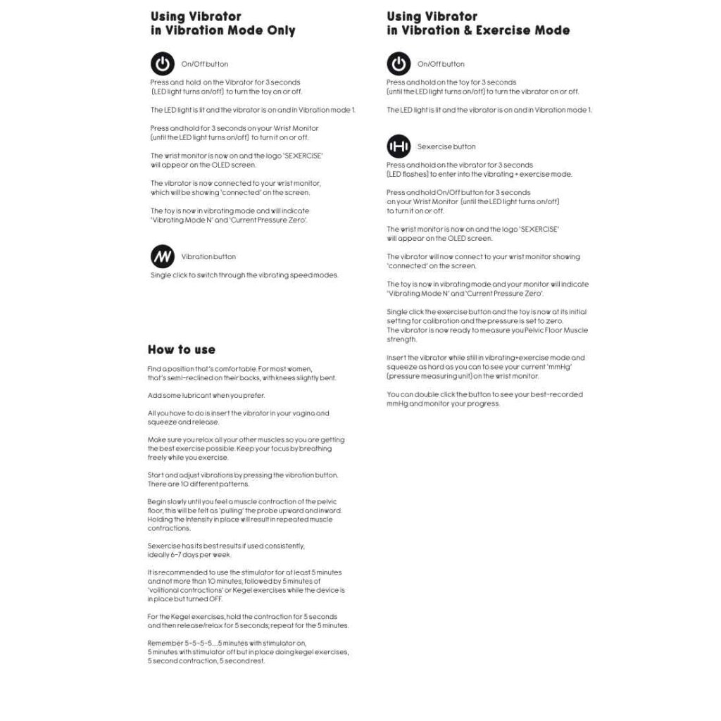 The SEXERCISE Kegel Wand combines the vibrating pleasure thanks to the vibrator with remote control and the professional training of the pelvic floor muscles! Made of soft, high-quality silicone, the Kegel Wand has a total insertable length of 12.5 cm (4.92 inches) and a maximum width of 3.7 cm (1.54 inches). It can be charged with the included USB cable. The ultra powerful motor comes with 10 different and exciting vibration settings. The included manual will tell you everything you need to know to improve your pelvic floor muscle workout and monitor your progress using the device on your wrist while experiencing sexual pleasure!