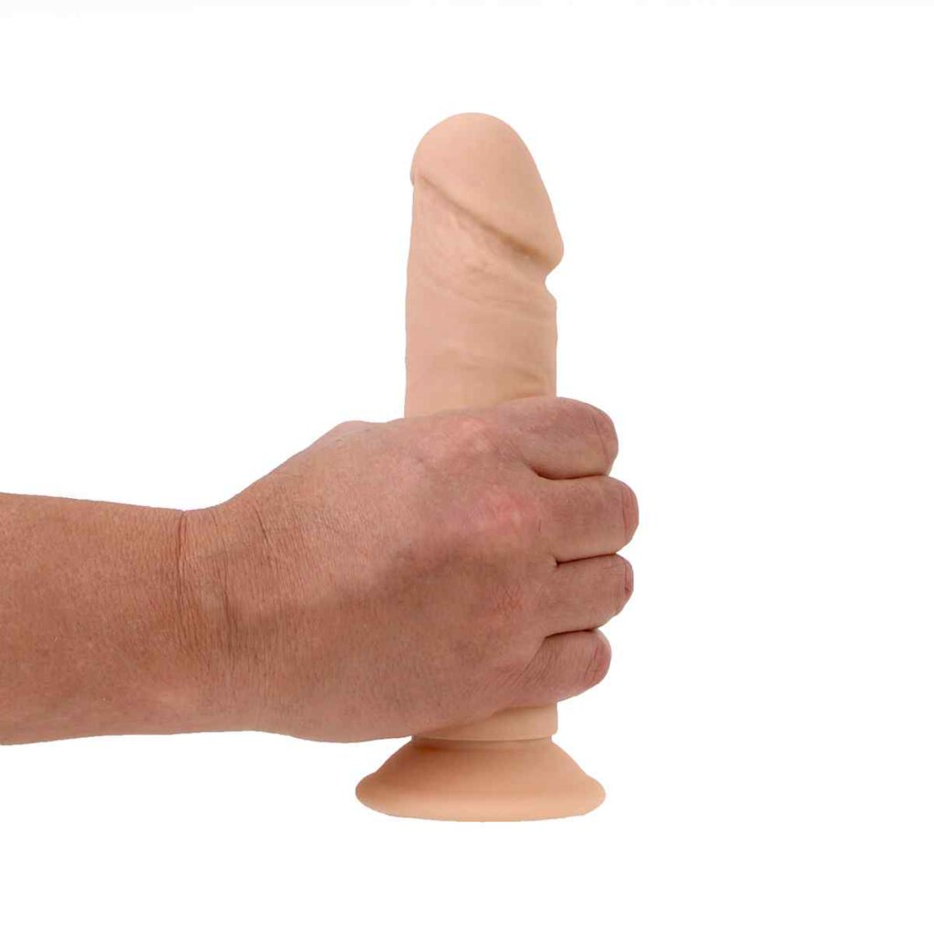 This dildo has a realistic look and feel. The strong suction cup means you can attach your dildo to a smooth surface such as a door, bathroom wall or the edge of a bathtub!