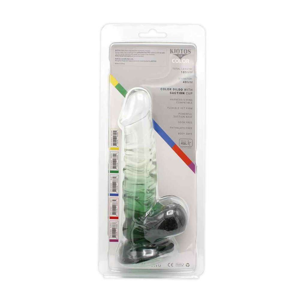 Ce gode spécial transparent a un mélange de couleurs vertes étonnant et a une forme réaliste. La forte ventouse signifie que vous pouvez attacher votre gode de couleur à une surface lisse comme une porte, un mur de salle de bain ou le bord d'une baignoire !