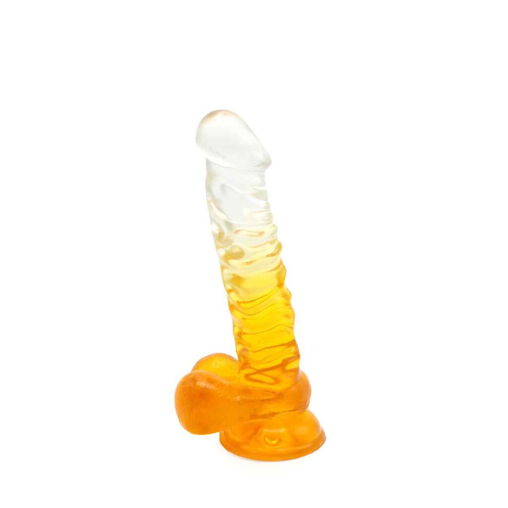 Ce gode spécial transparent a un mélange de couleurs jaunes étonnant et a une forme réaliste. La forte ventouse signifie que vous pouvez attacher votre gode de couleur à une surface lisse comme une porte, un mur de salle de bain ou le bord d'une baignoire !