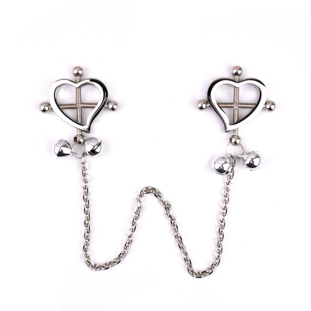 Stainless Steel Heart-Shaped Nipple Clamps with Tinkling Bells: Romantic and Playful