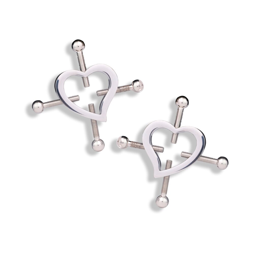 Enhance your sensory play with these Heart-Shaped Nipple Clamps featuring tinkling bells. Crafted from durable stainless steel, these clamps combine functionality with a romantic design. The heart shape adds a unique touch, while the adjustable screws allow you to personalize the pressure for a comfortable and pleasurable experience.