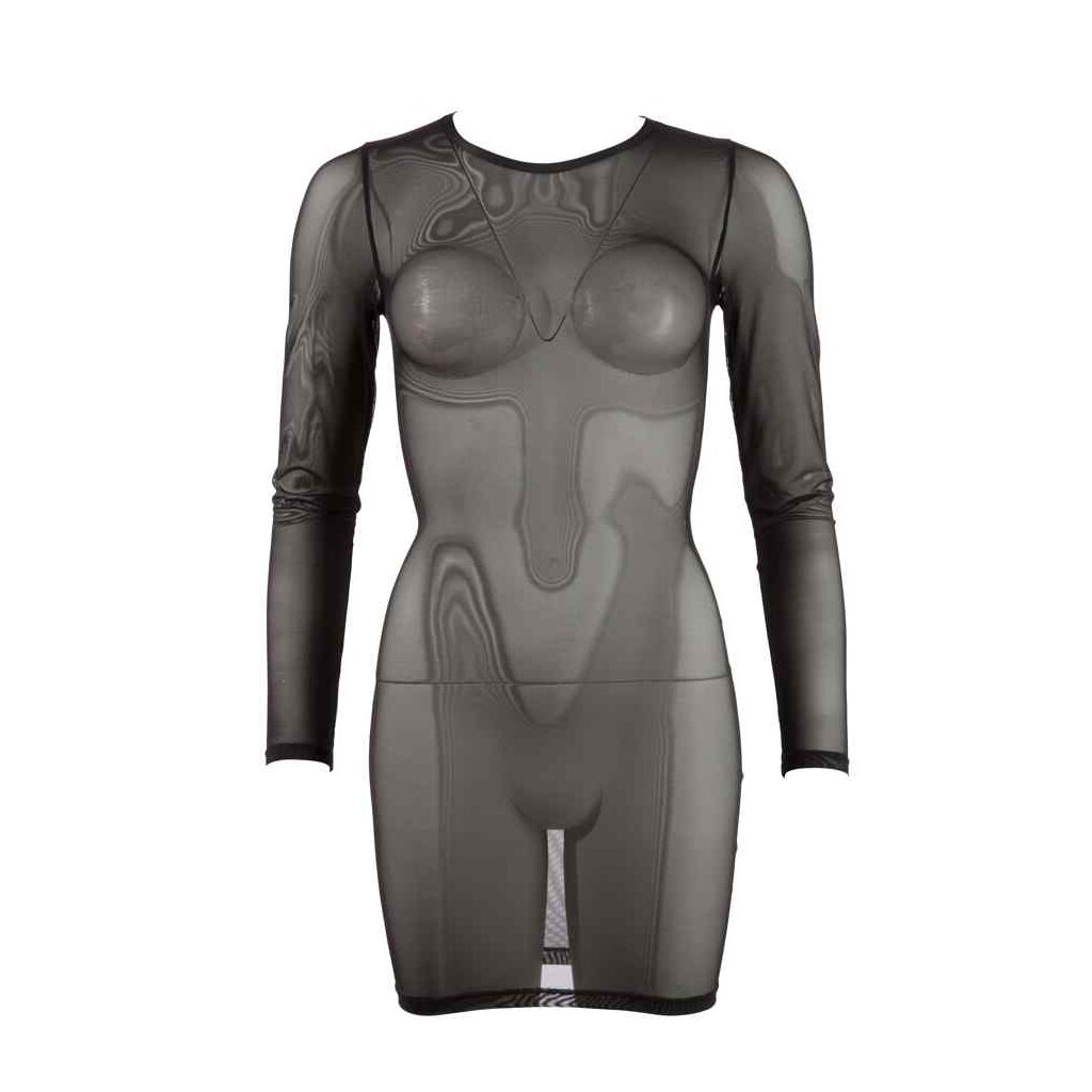 Cette robe est comme une seconde peau qui flatte la silhouette car elle met en valeur vos courbes. Il n'y a pas non plus de place pour un soutien-gorge ou un string - pour son plus grand plaisir... Robe noire en powernet avec des manches longues et un décolleté rond. 90% polyamide, 10% spandex.
