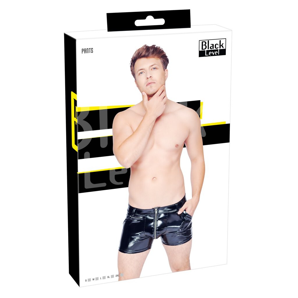 Classic black pants by Black Level made of longitudinal and transverse elastic 4-way stretch vinyl for a body-hugging crisp fit with high wearing comfort. With side pockets and distinctive, underlaid metal zipper at the front.