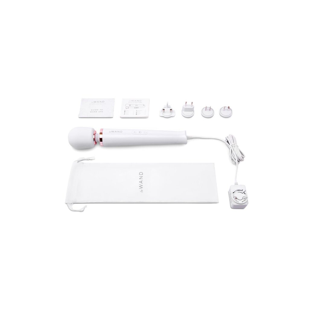 Immerse yourself in the world of sensual stimulation with Le Wand Plug-In. This powerful toy offers you 10 unique, powerful vibration speeds and 6 different vibration patterns to awaken your senses. The flexible neck allows for easy positioning for maximum pleasure, while the extra-long 2.4 meter power cord gives you limitless possibilities for use. Made from 100% body-safe silicone, Le Wand Plug-In guarantees not only the highest quality but also safety for your body. The included travel lock, travel case and instructions for pleasure make this toy the perfect companion for on the go. With a diameter of 6.21 cm and a maximum noise level of less than 68 dB, you can enjoy your pleasure discreetly and intensely. Let yourself be seduced by the versatile functions and elegant design of Le Wand Plug-In and experience unforgettable moments full of sensuality and intimacy.