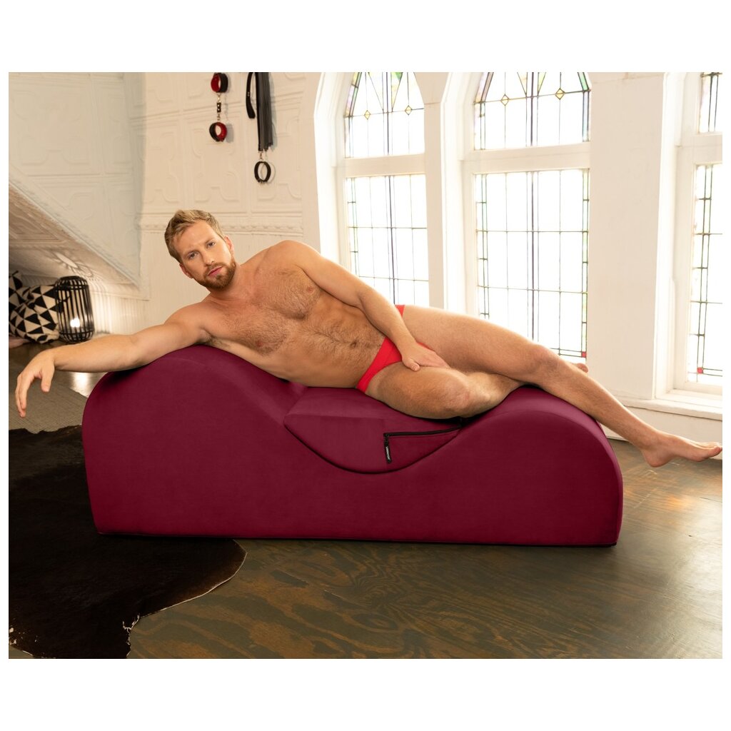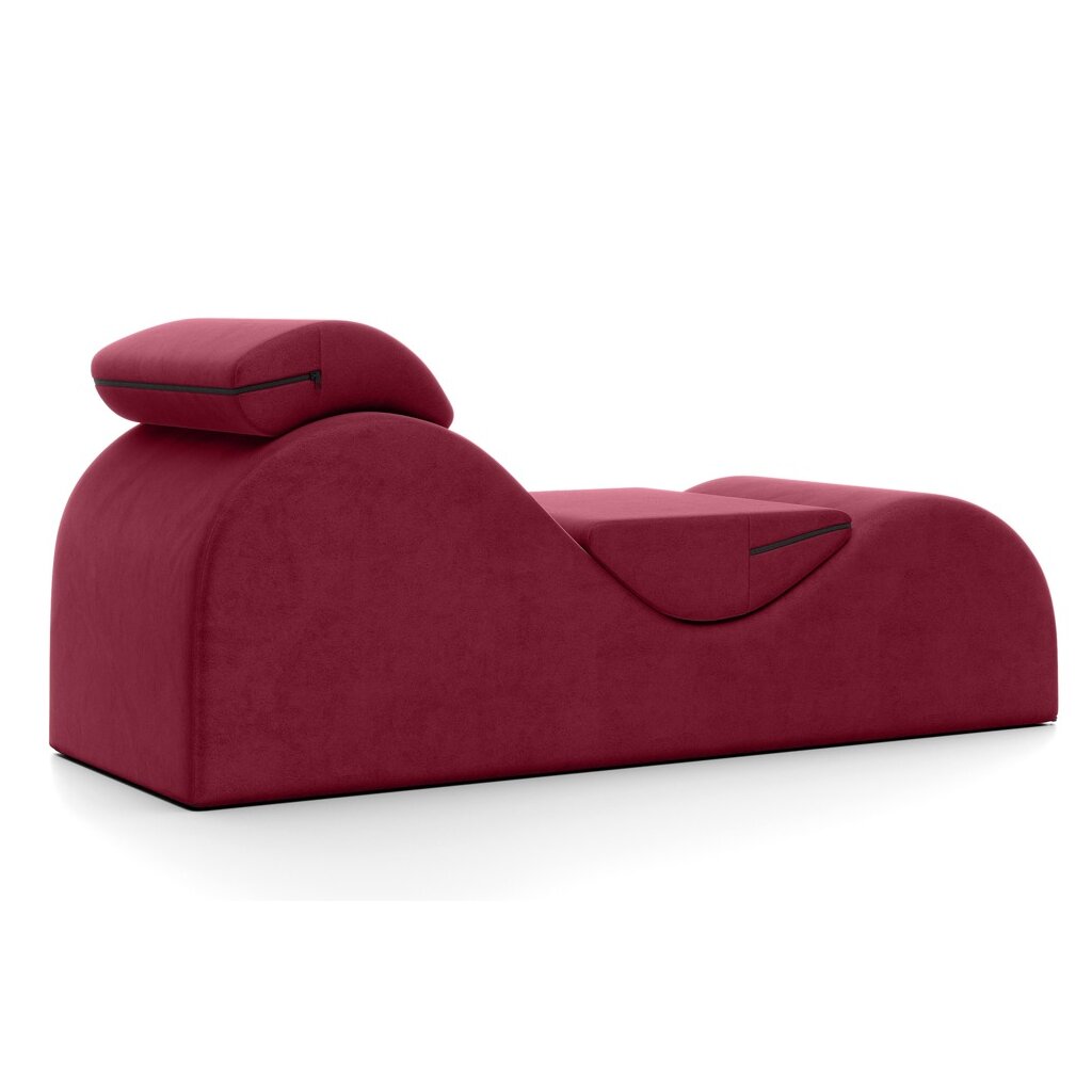 Der ergonomisch optimal designte Esse Lounger von Liberator ist Liebesmöbel und Relax-Sessel in einem. Er sieht unauffällig edel dekorativ aus und bietet neben bequemen entspannten Liegepositionen (z. B. beim Lesen) auch die perfekte Unterstützung beim stellungsreichen Paar-Sex. Kopf, Nacken und Rücken werden komfortabel stabilisiert, Wirbelsäule und Bandscheiben entlastet, sodass extra tiefe Penetrationen problemlos möglich sind. Die beiliegende Kopfstütze und das beiliegende Halbrundkissen bieten zusätzlichen Halt und Komfort. Beides kann auch separat als Liebeskissen bzw. Stütze zum Einsatz kommen und noch weitere vielfältige Liebespositionen im Stehen, Knien und Doggy Style ermöglichen.
